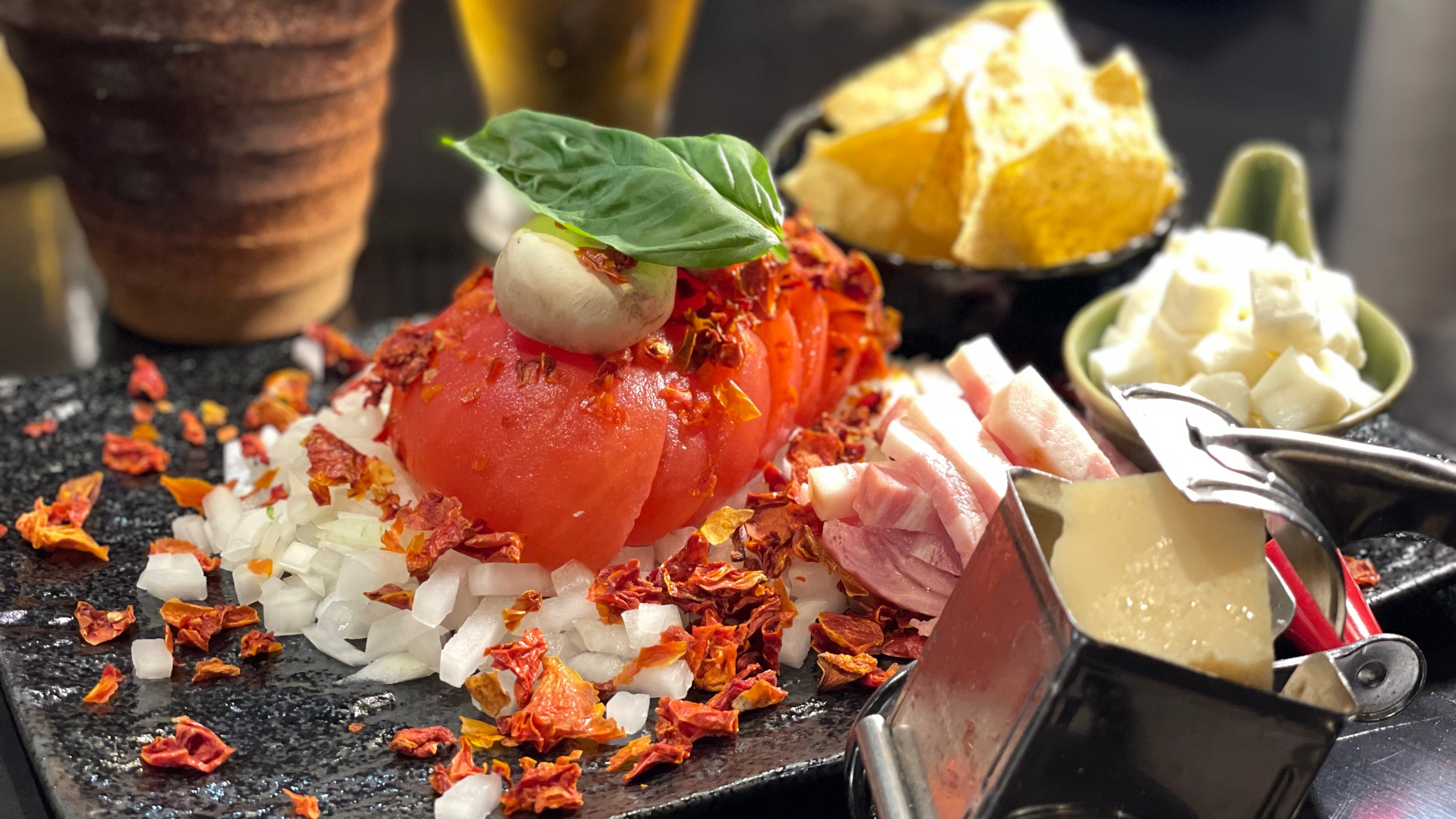 もんじゃ焼き「豚肉とトマトとバジルチーズ」(2,300円)