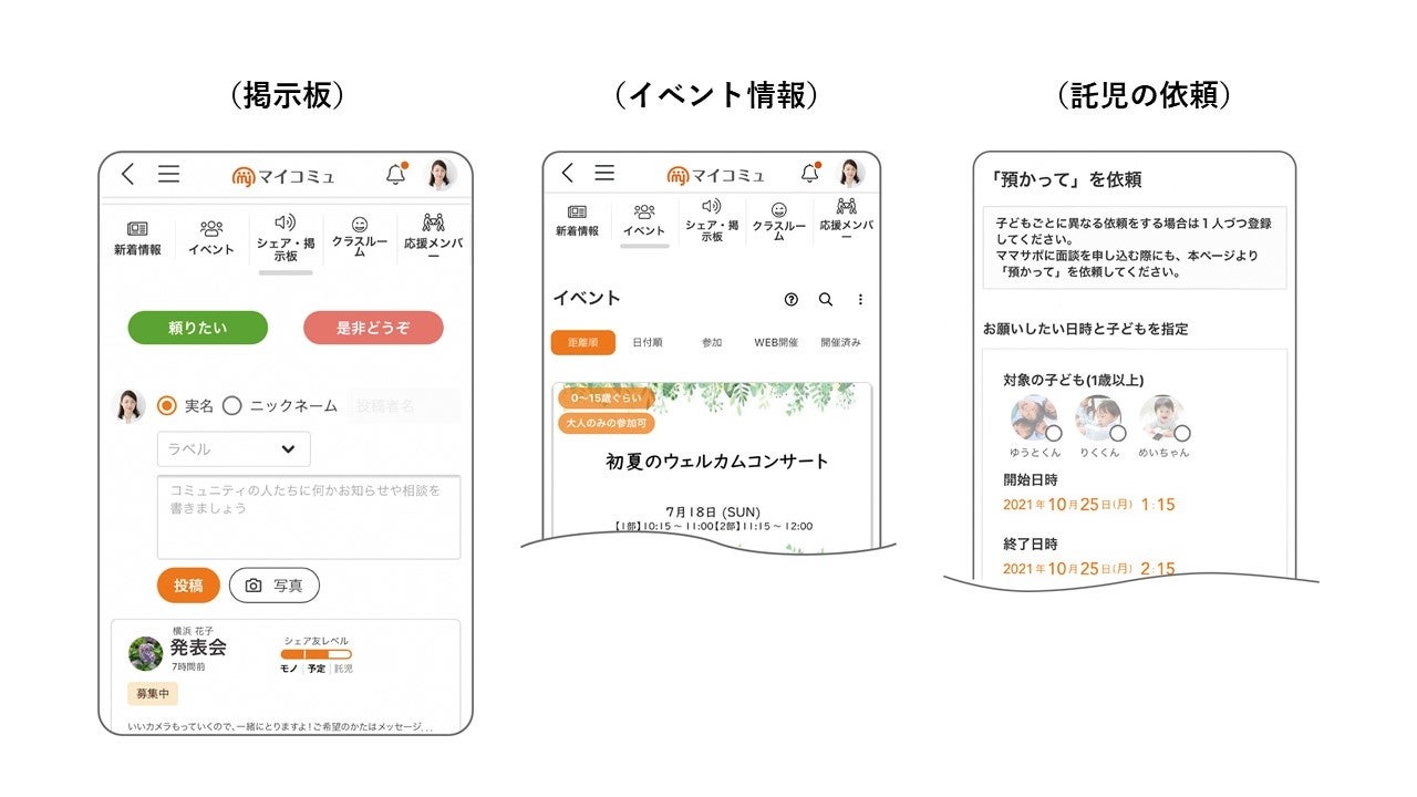園・クラス単位でコミュニティを設定し,保護者同士の交流や頼りあい活動を促進するアプリは「全国初」の取組となります。