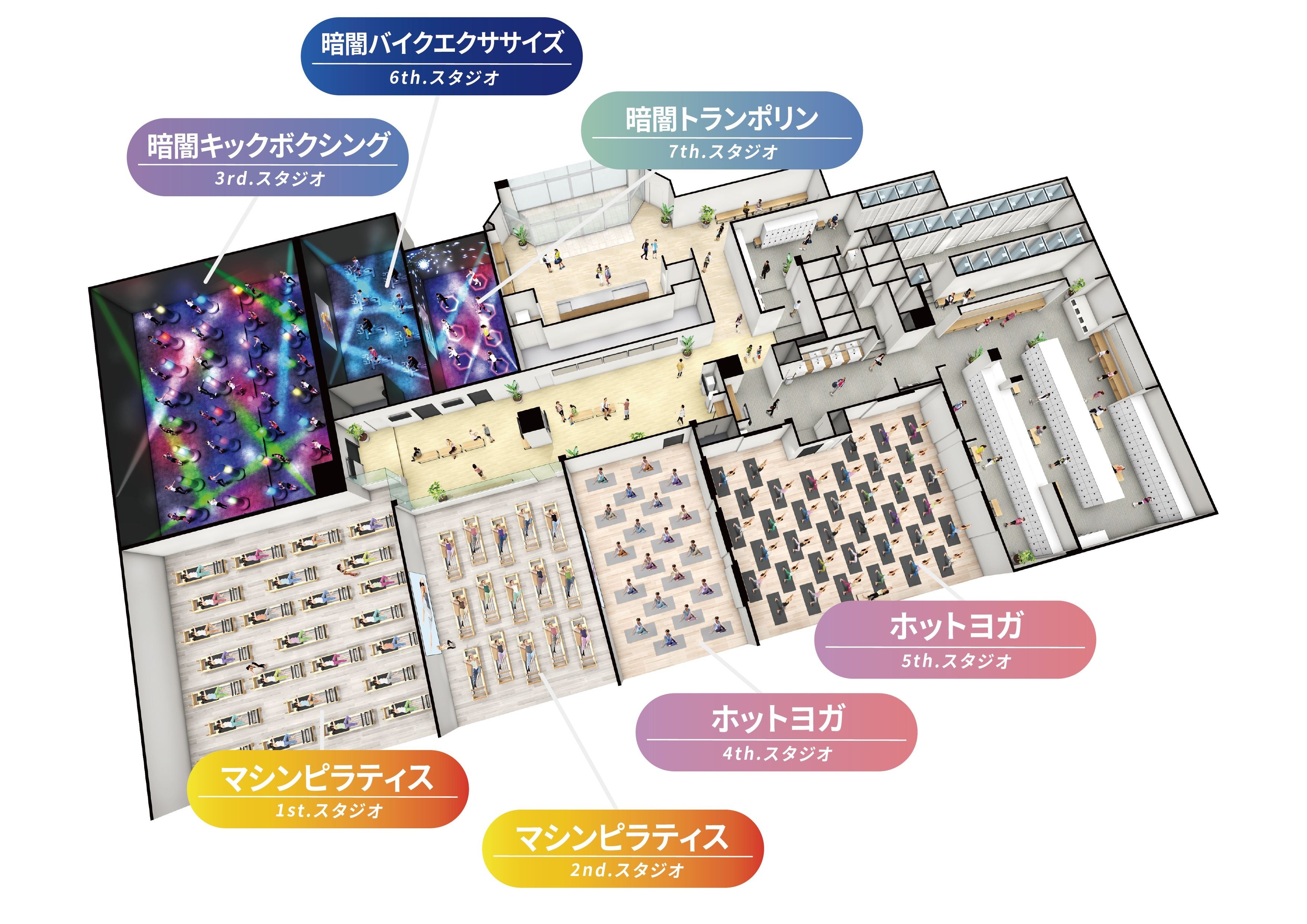 ホットヨガ・マシンピラティス・暗闇キックボクシングなど、≪7スタジオ≫1日60本以上のレッスンが、全部通い放題!