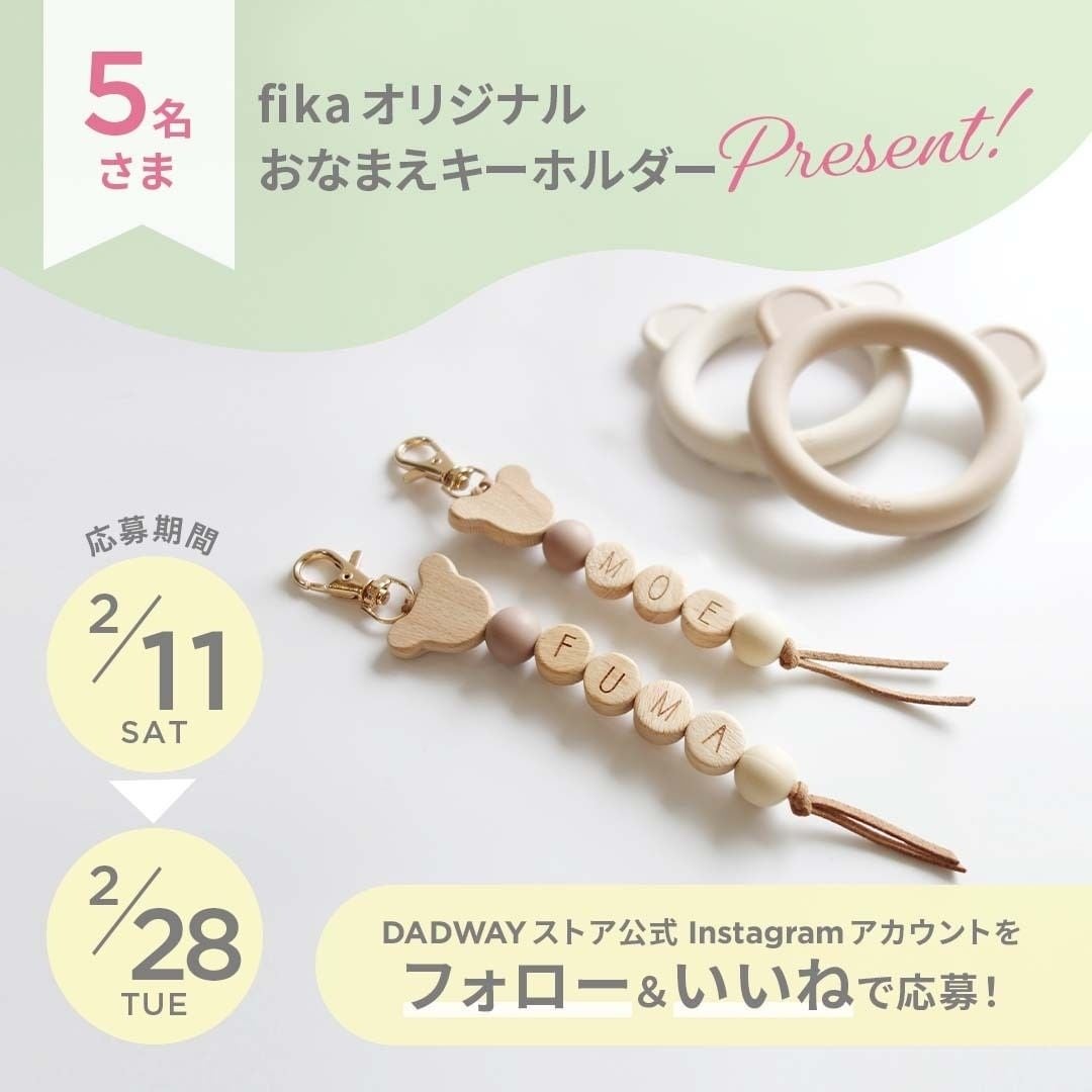 DADWAYストア公式Instagramアカウントでは2023年2月11日(土)~2月28日(火)まで、新商品発売を記念したプレゼントキャンペーンを実施。fikaオリジナルおなまえキーホルダーを5名様にプレゼントいたします。
