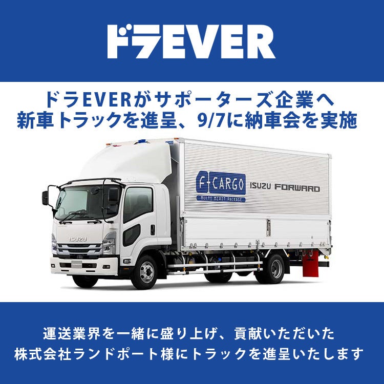 ドライバー専門求人サイトを運営する株式会社ドラEVERは、本年度まで運送業界の繁栄にご貢献くださった株式会社ランドポート様へ感謝の意を込め、新車トラックを進呈、納車会を実施いたします。