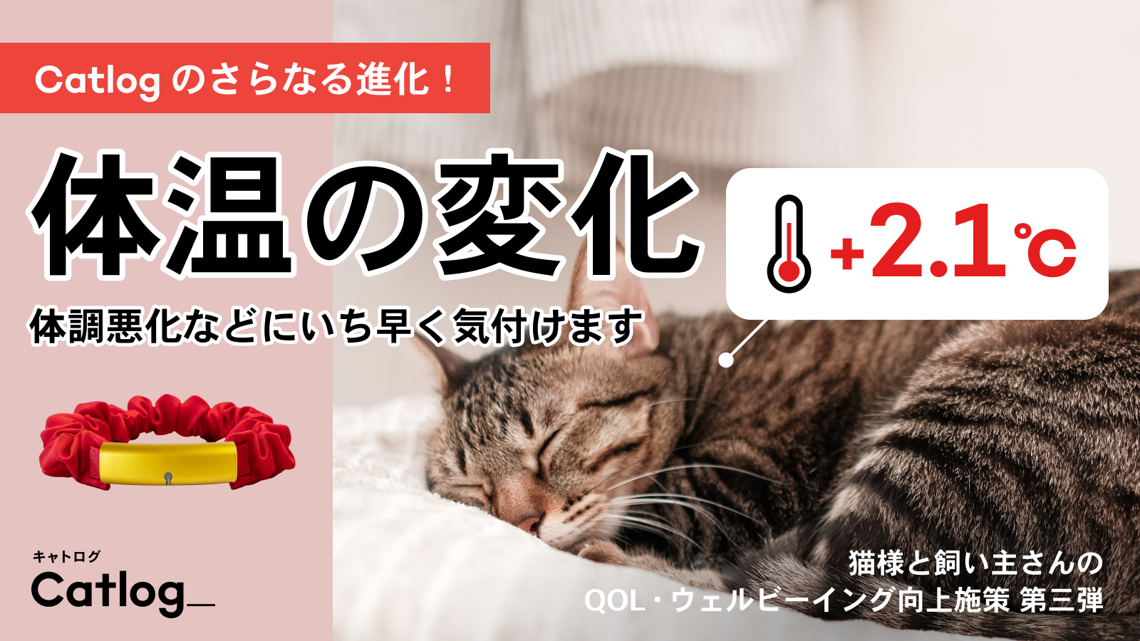 猫様の体調悪化などをいち早く気づける「体温の変化」機能が次世代のスマート猫首輪「Catlog®(キャトログ)」へ追加!