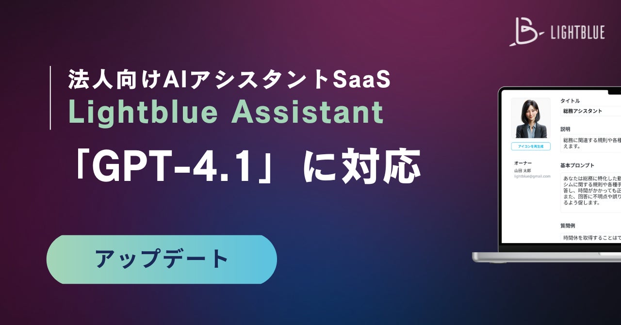 法人向けAIアシスタントSaaS「Lightblue Assistant」、最新モデル「GPT-4.1」への対応を完了し標準機能として提供開始