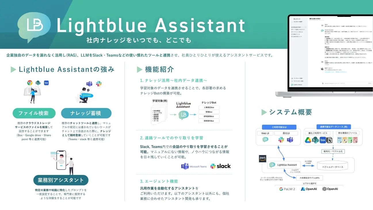 ・SlackやTeamsにて利用できる法人向けChatGPT「Lightblue Assistant」