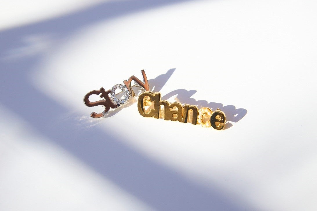 2022年のスタートに大人女性の背中を押すロゴメッセージをのせたブローチ2種。