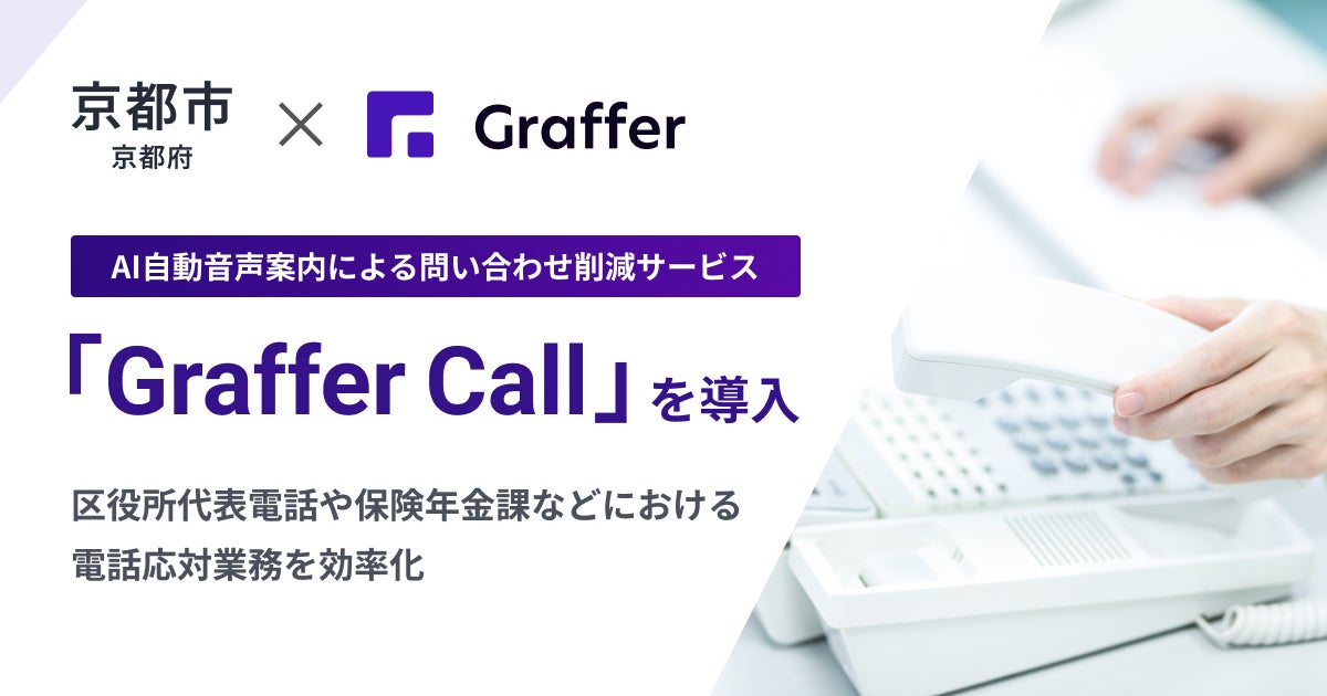 企業・行政機関における業務のデジタル変革を手掛ける株式会社グラファー(本社:東京都渋谷区、代表取締役:石井大地、以下「当社」)と京都府京都市(市長:松井孝治)が公民連携の下、AIとプッシュダイヤルを活用して区役所の電話応対サービスの向上と業務効率化の実現を目指す「Graffer Call」導入の実証実験を開始したことをお知らせします。この取り組みにより、区役所代表電話や区役所保険年金課、文化市民局地域自治推進室における電話応対業務のサービスの向上と業務効率化を図ります。