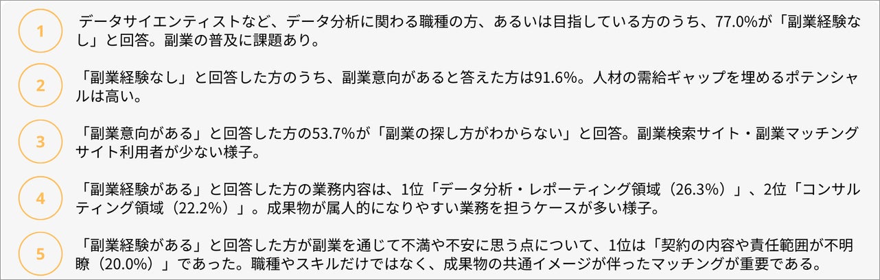 ※本調査では「副業」を「データサイエンス関連業務(例:データサイエンティストやデータアナリスト、AIエンジニア、AIコンサルタント等の職種)かつ報酬を伴う仕事」と定義しています。