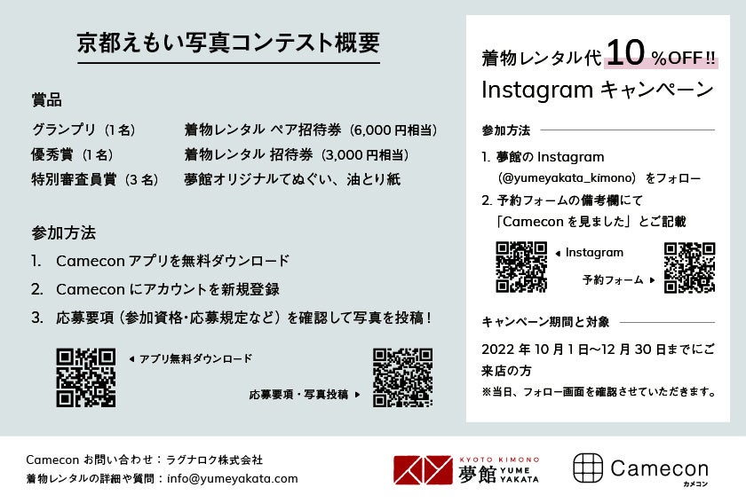 京都最大級の着物レンタル店「夢館」がCamecon(カメコン)にて期間限定フォトコンテストを開催!京都の「えもい」をテーマに写真を募集中!【2022年12月5日(土)まで】