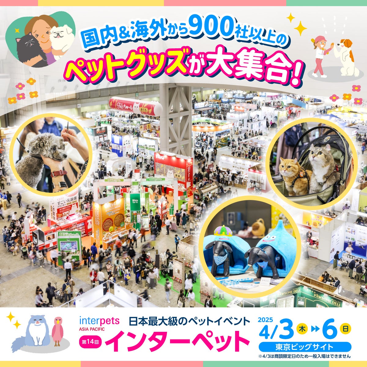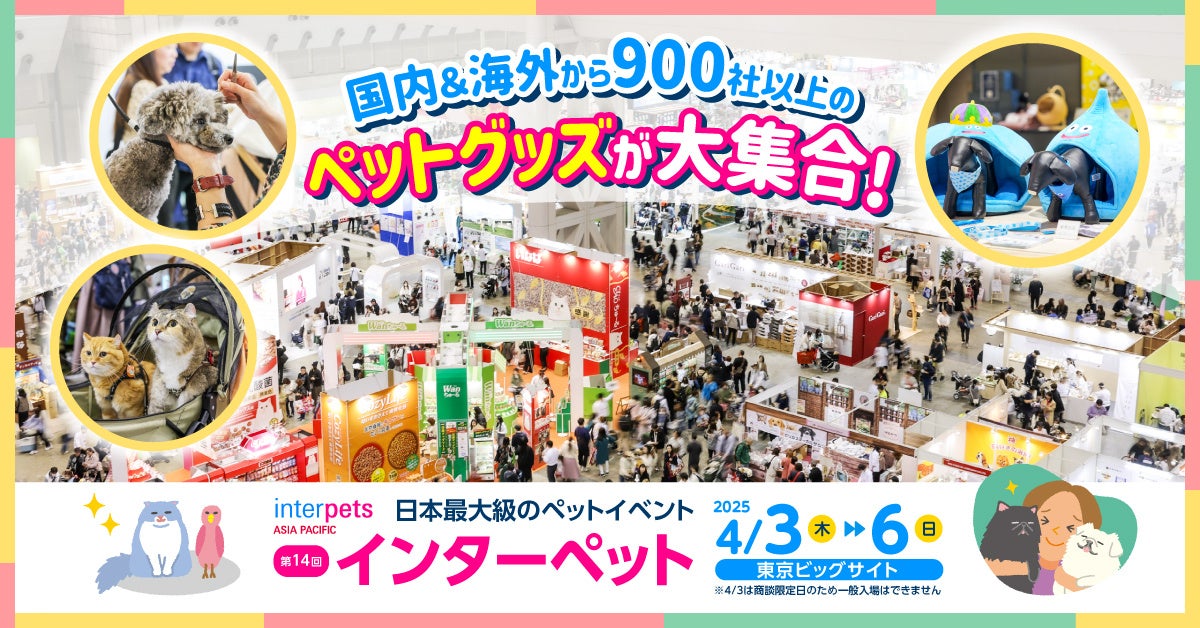 人とペットの豊かな暮らしを提案する「インターペット」が、2025年4月3日(木)から6日(日)まで、東京ビッグサイト東1-8ホールで開催されます。ペットフードやグッズはもちろん、ファッションやヘルスケア、IT家電、防災、旅行など、多彩なペット関連製品・サービスが国内外から集結。さらに、セミナーやワークショップも実施され、ペットに関する学びや飼い主同士の交流の場としても親しまれています。2025年は950社以上の出展企業が確定しており、過去最大の展示面積で来場者を迎えます。
