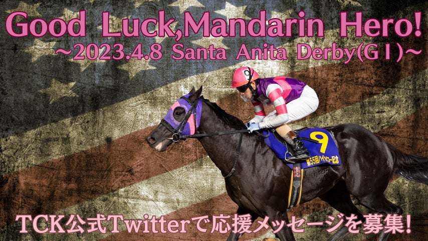 東京シティ競馬(TCK)では、大井競馬第20回開催(3/27~3/31)において、アメリカ・サンタアニタパーク競馬場で実施されるサンタアニタダービー(GⅠ)(現地4月8日(土)・日本4月9日(日))への出走を目指すTCK所属のマンダリンヒーロー号(牡3・藤田 輝信きゅう舎)への応援メッセージを募集します。