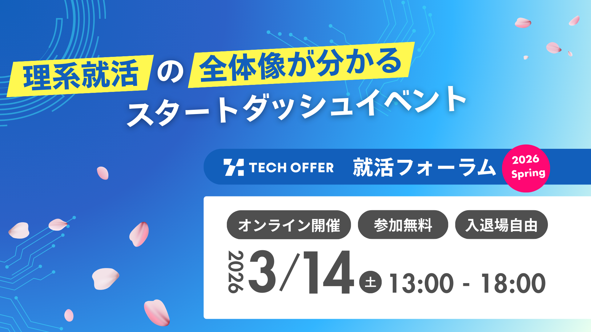 イベント名:TECH OFFER 就活フォーラム2026 Spring