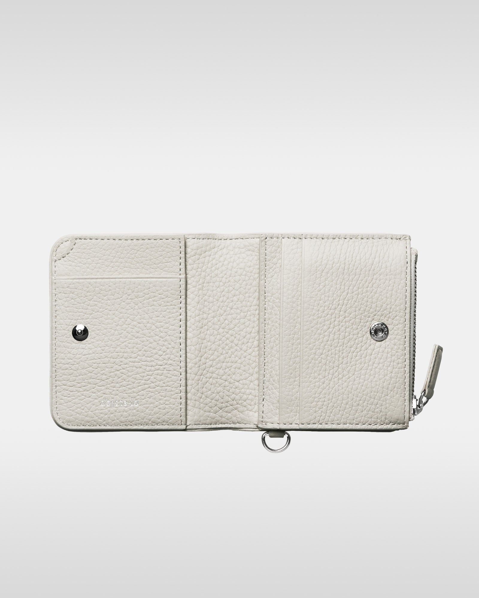 ベーシックなL字型のミニ財布。ジップ仕様ながらも滑らかに開閉でき、収納部から貨幣を取り出しやすい設計。最低限の貨幣・カードを携帯できる、小回りの利くモデルです。