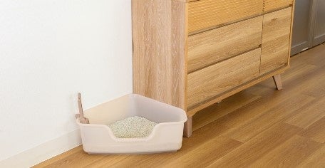 獣医師が推奨するトイレ設置台数「頭数+1台」におすすめ! お部屋のコーナーにスッキリ収まる新形状猫用トイレ『ニオイをとる砂専用 コンパクトコーナー猫トイレ』新発売(ライオンペット㈱)