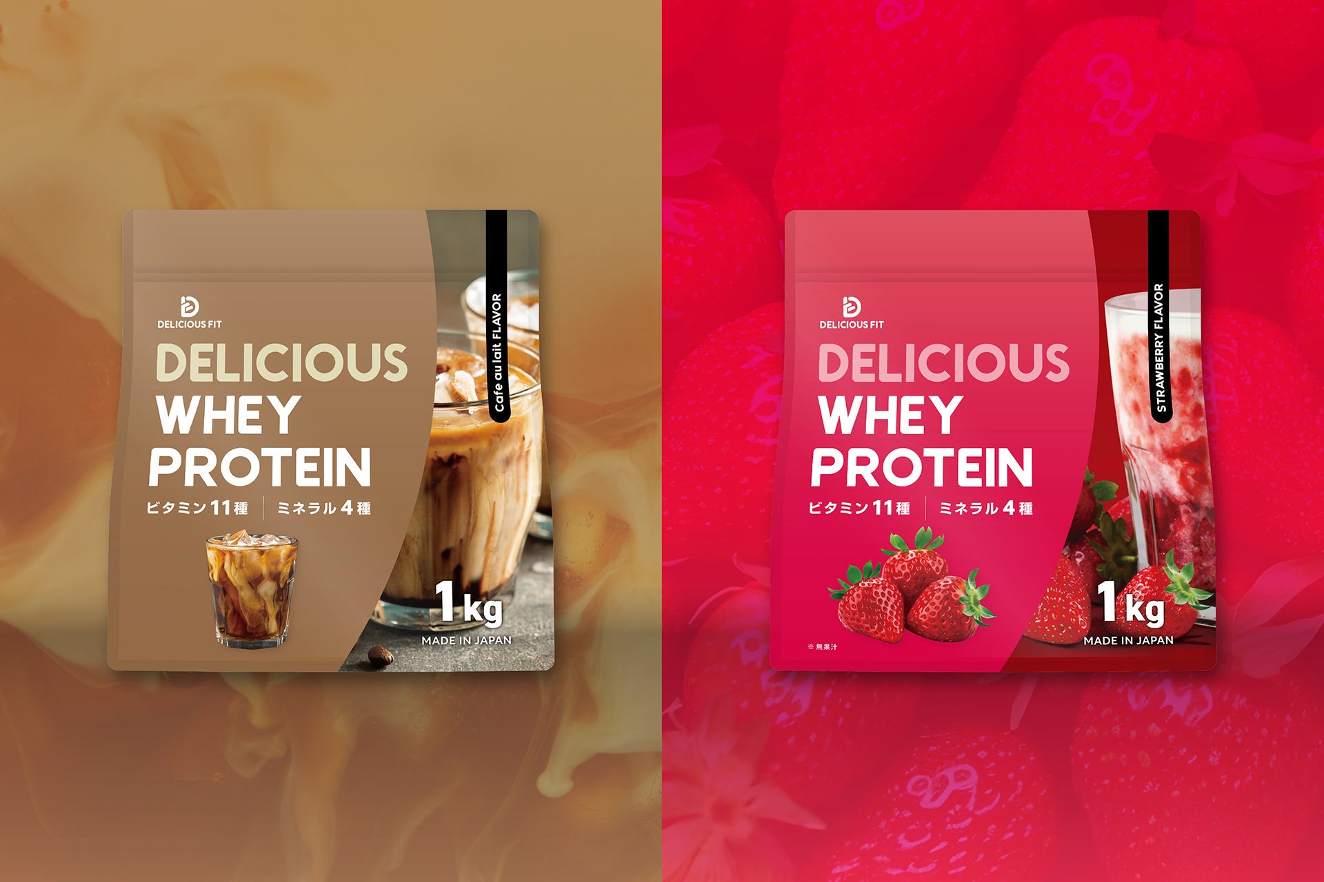 品名:DELICIOUS WHEY PROTEIN 贅沢カフェオレ風味/濃厚いちご風味
