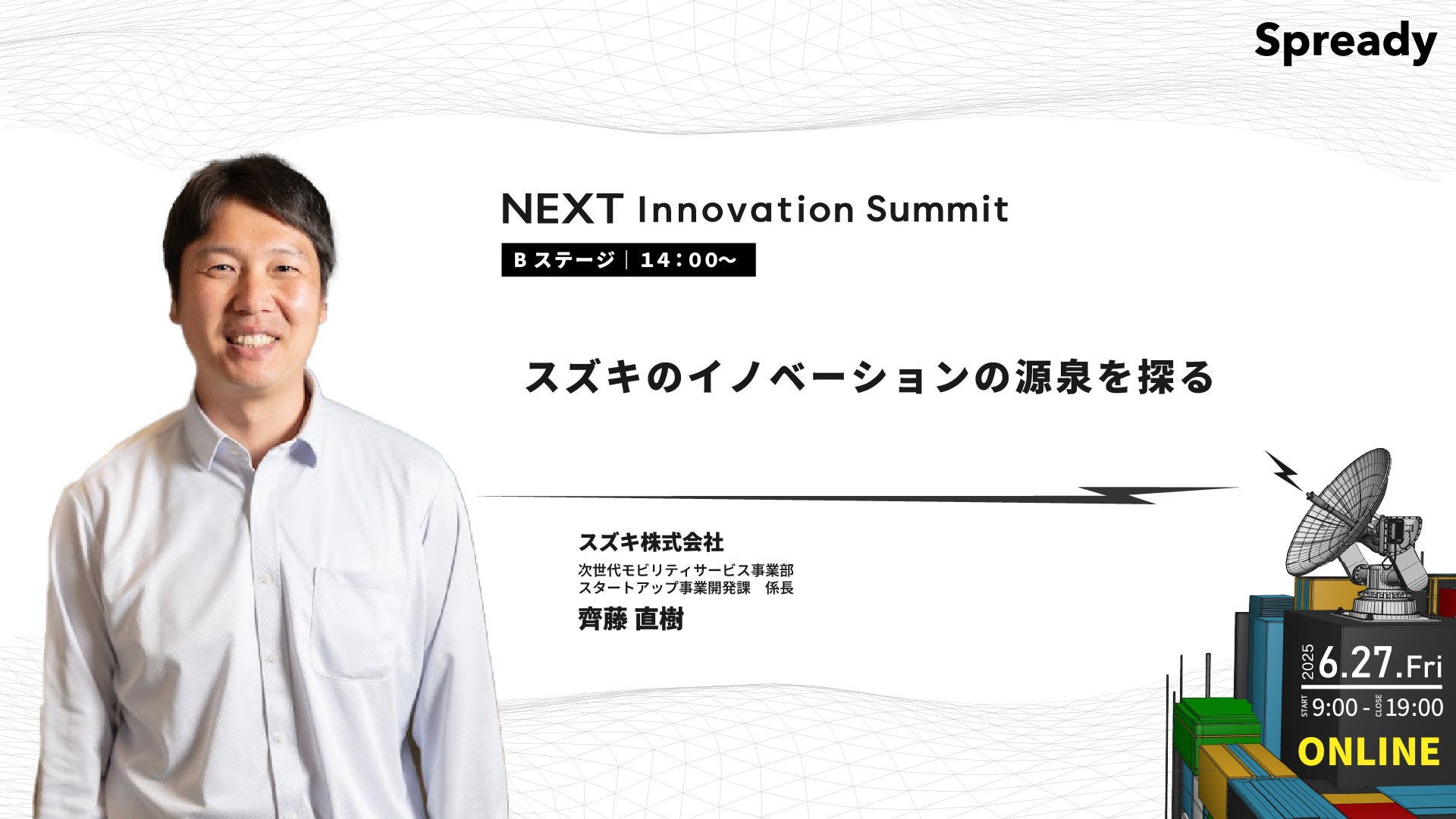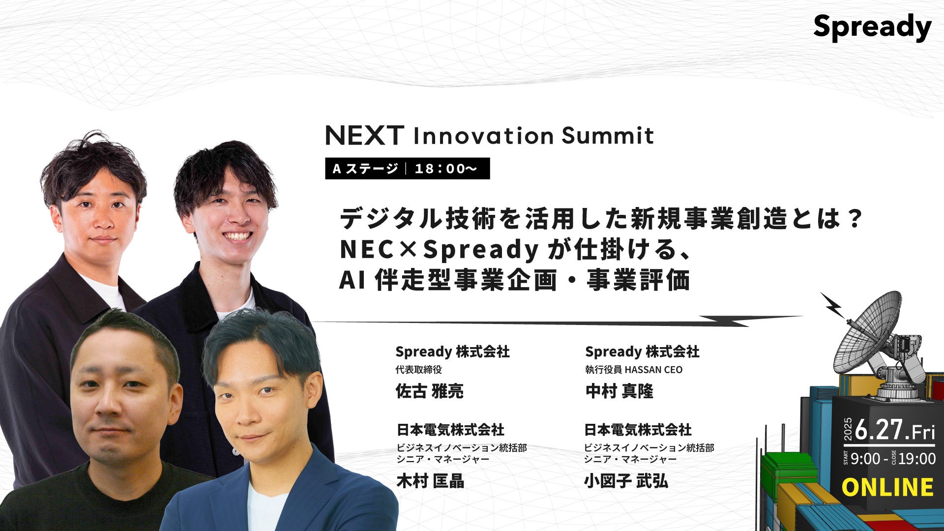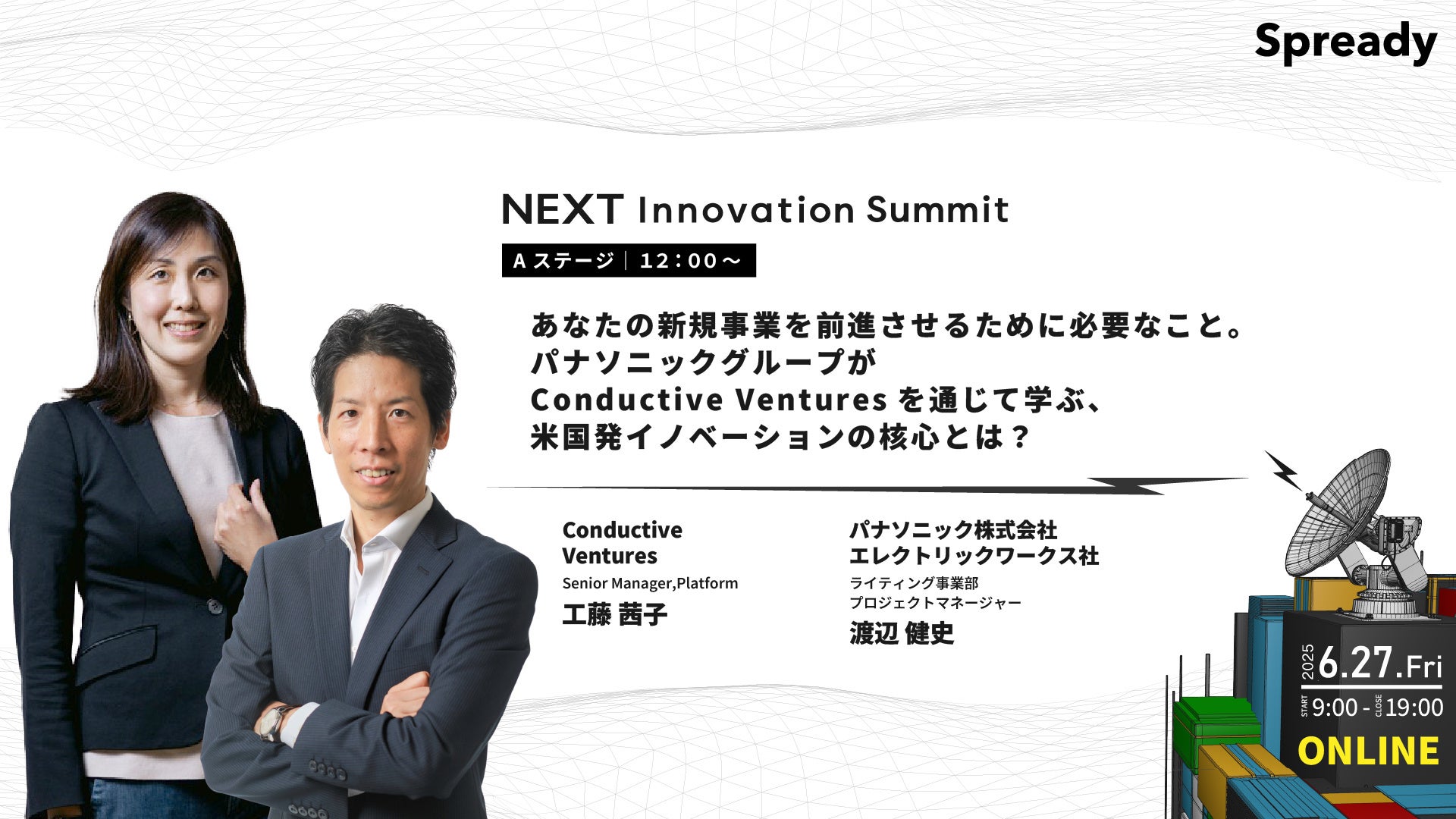 新規事業に出会えるプラットフォーム「Spready(スプレディ)」を運営するSpready株式会社(本社:東京都渋谷区、代表取締役社長:佐古雅亮、以下「当社」)は、2025年6月27日(金)に新規事業の取り組みや知見を発信するカンファレンス「NEXT Innovation Summit 2025 in Summer 新規事業担当者のための『学び』と『出会い』があふれる1日(以下「本イベント」)」の申し込み者数が3,600名を突破したことをお知らせします。
