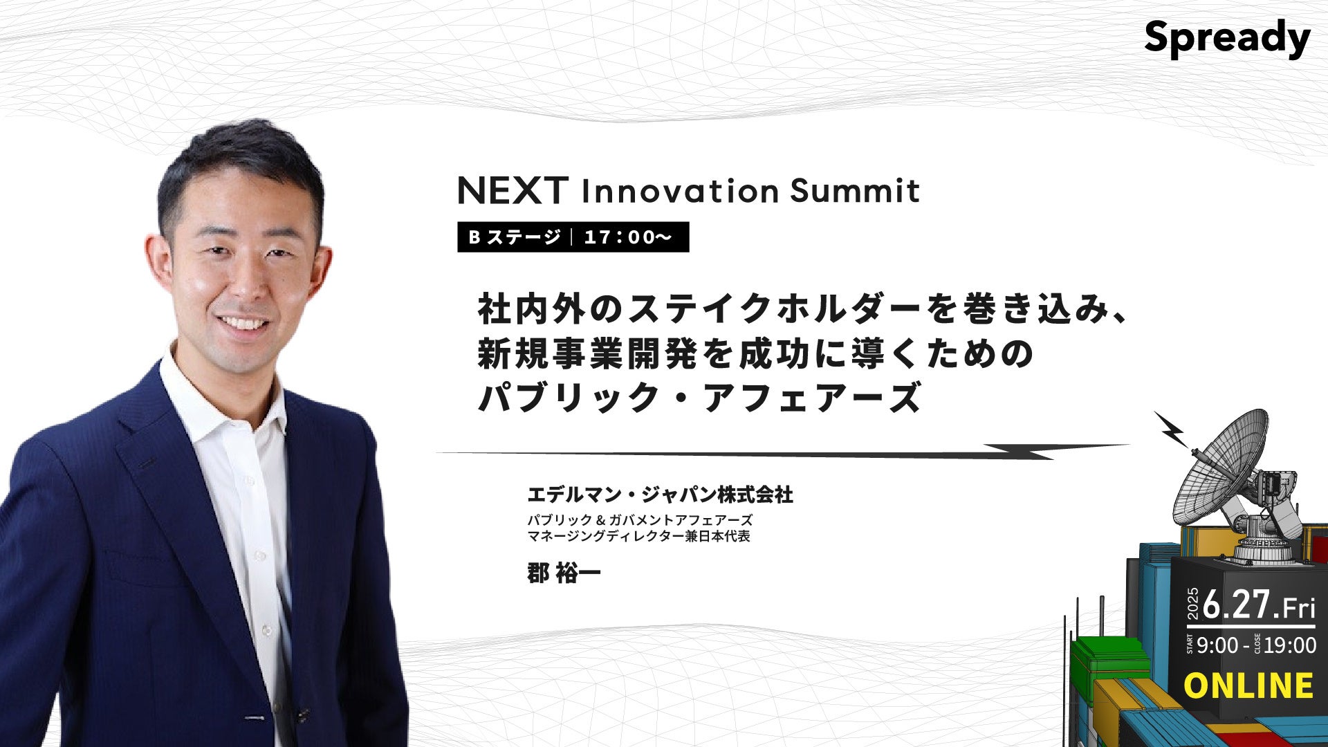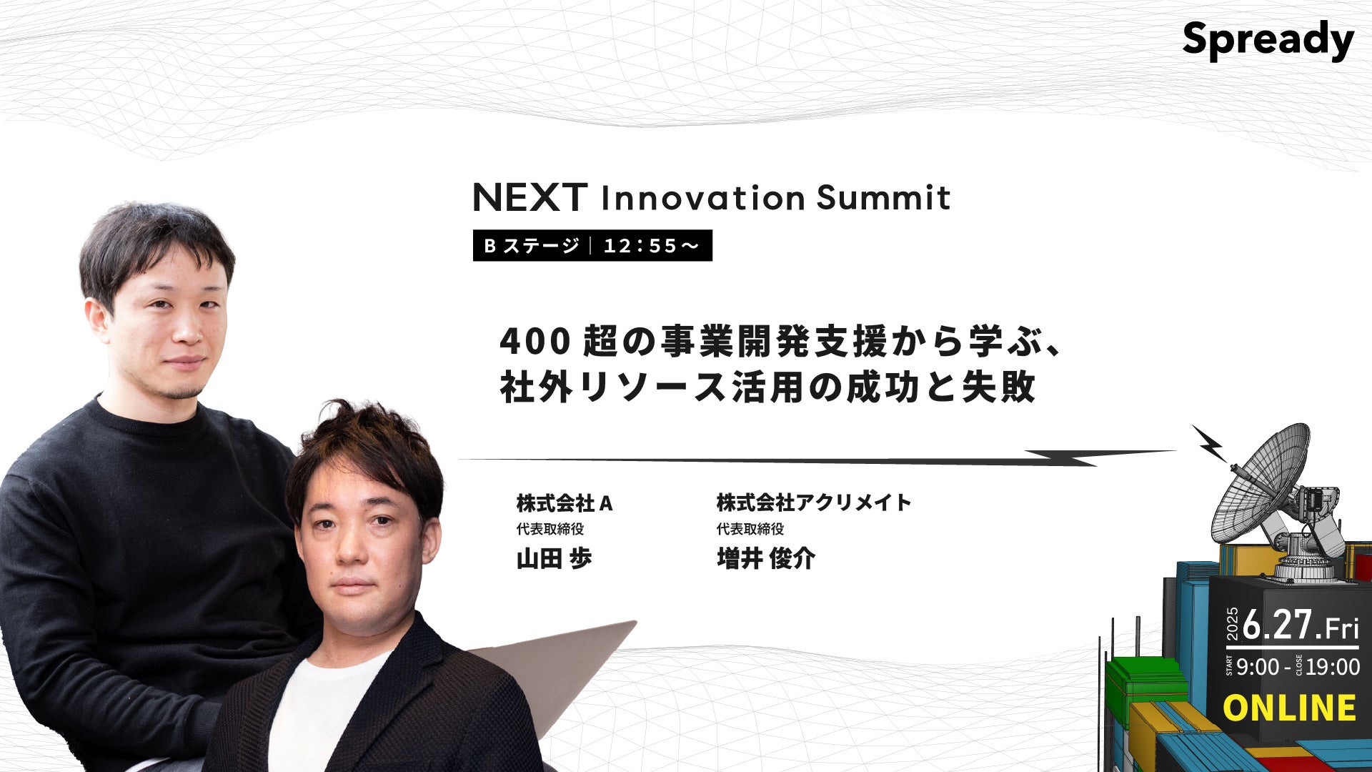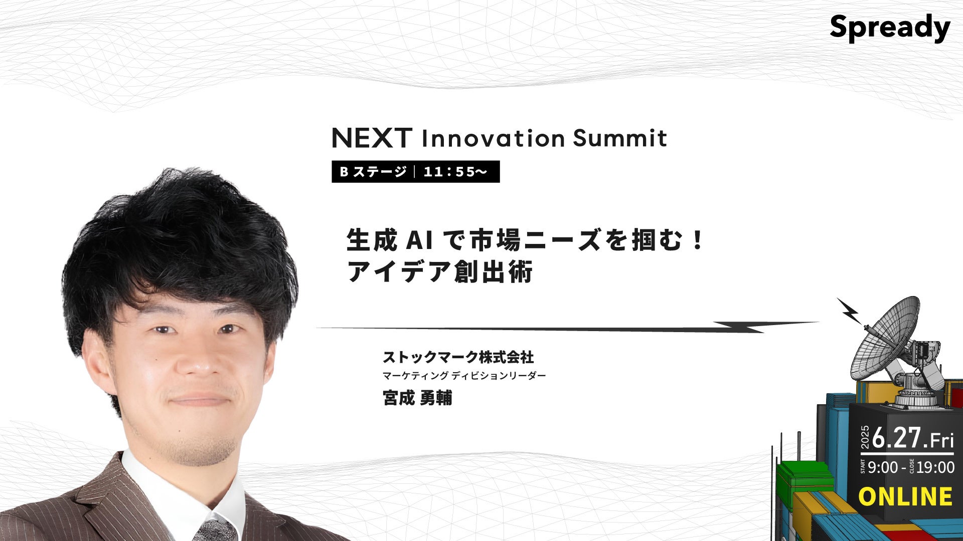 新規事業に出会えるプラットフォーム「Spready(スプレディ)」を運営するSpready株式会社(本社:東京都渋谷区、代表取締役社長:佐古雅亮、以下「当社」)は、2025年6月27日(金)に新規事業の取り組みや知見を発信するカンファレンス「NEXT Innovation Summit 2025 in Summer 新規事業担当者のための『学び』と『出会い』があふれる1日(以下「本イベント」)」の申し込み者数が3,600名を突破したことをお知らせします。