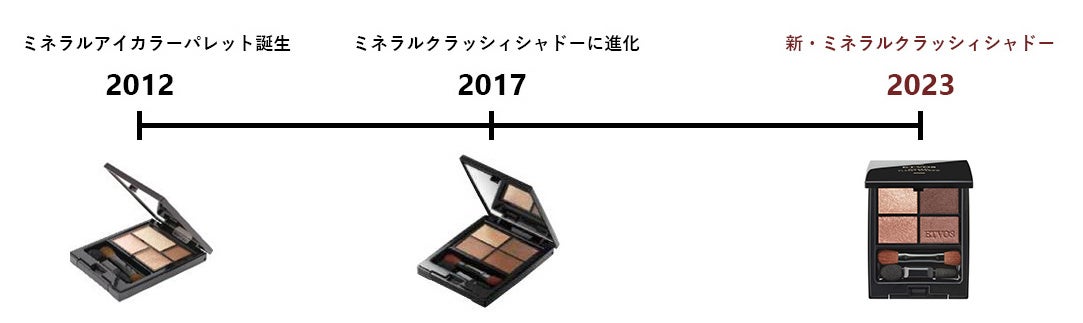 そして今回、敏感な目元悩みへのスキンケア効果をより強化させた「ミネラルクラッシィシャドー」へとバージョンアップ。大人の目元を上品なツヤと発色で彩る美容液アイパウダーとして進化いたしました。