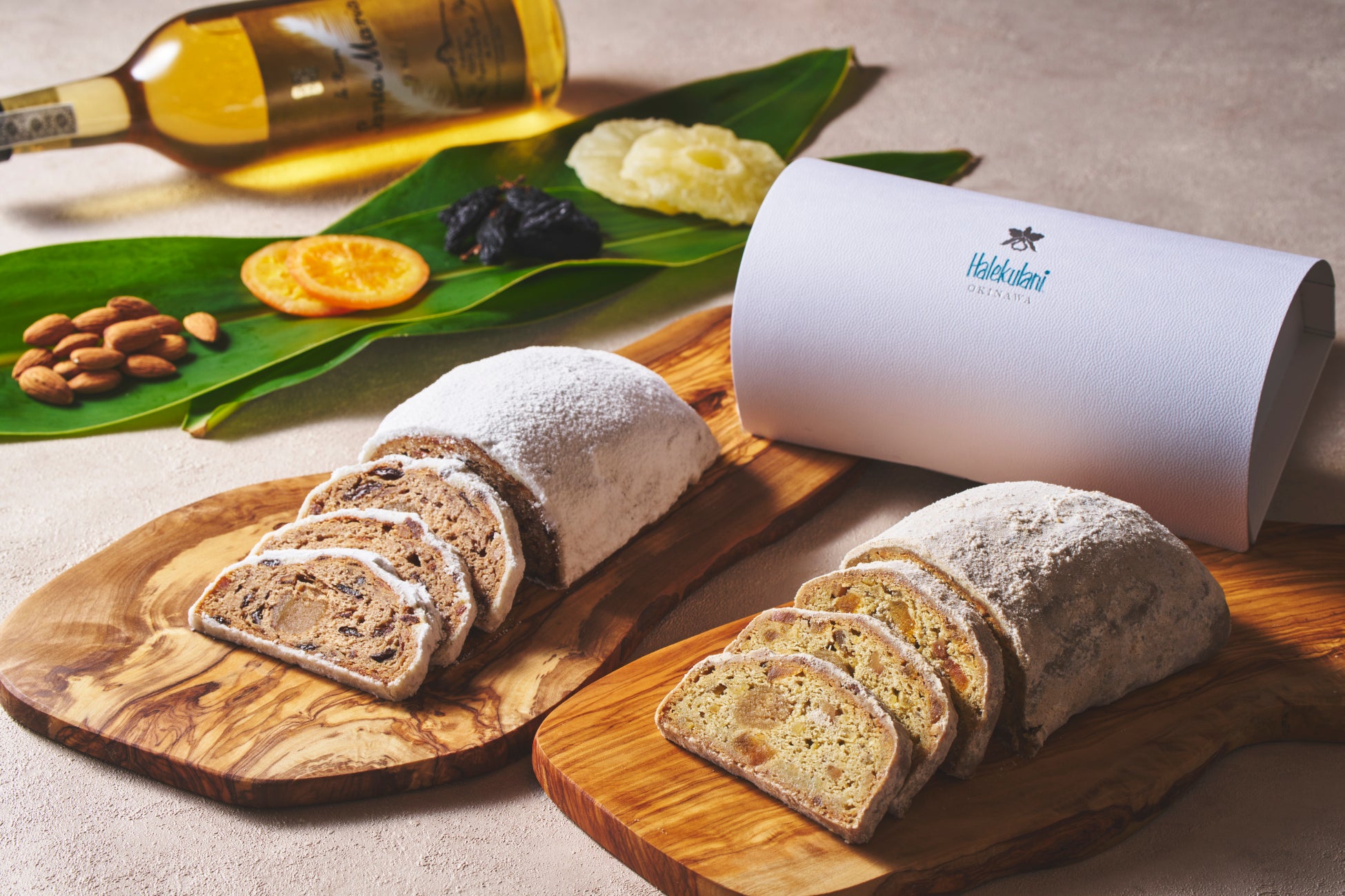 この冬も、ホリデーギフトに最適なホテルメイドのシュトーレンを数量限定でご用意いたしました。芳醇なバターが香る生地でマジパンを包み込み、丁寧に仕上げた「シュトーレン」は、香り高いラム酒に付け込んだフルーツとナッツの食感がアクセントに。時とともに深まる上質な味わいをお楽しみいただけます。一方、南国の風が香る「トロピカルシュトーレン」は、伊江島産ラム酒に漬け込んだマンゴーやパパイヤ、ピパーチとからき*が香る生地に、マカダミアナッツとココナッツがアクセント。沖縄ならではのアレンジが光る、心惹かれる逸品です。どちらも、ご自宅での特別なひとときを演出するほか、大切な方への感謝を伝える贈り物として最適です。ハレクラニ沖縄がお届けする、この時期だけの特別な味わいをぜひご賞味ください。オンラインショップでもお取り寄せいただけますので、全国への発送も承ります。 *沖縄ニッケイというシナモンの木の一種、沖縄シナモンや琉球シナモンとも呼ばれる
