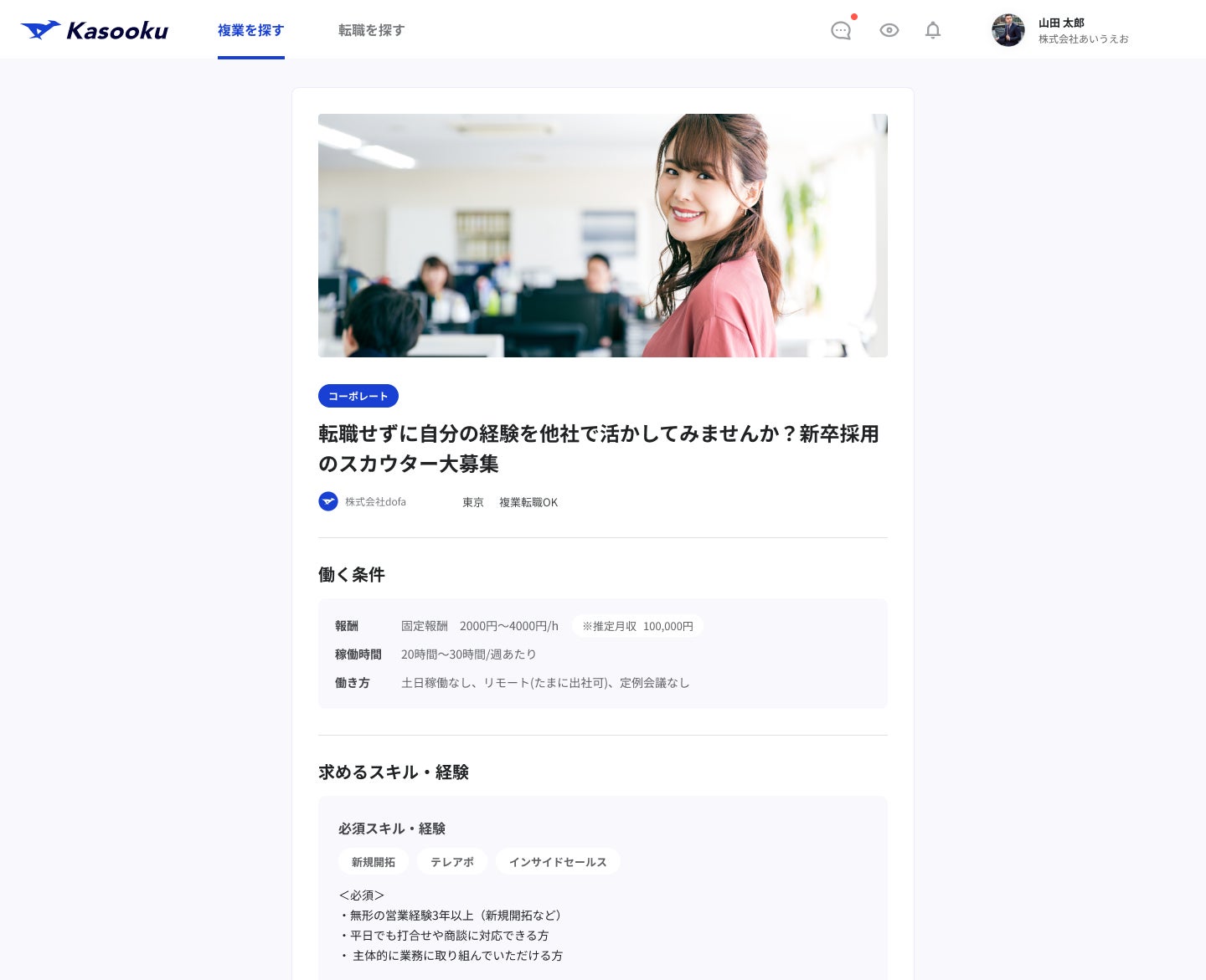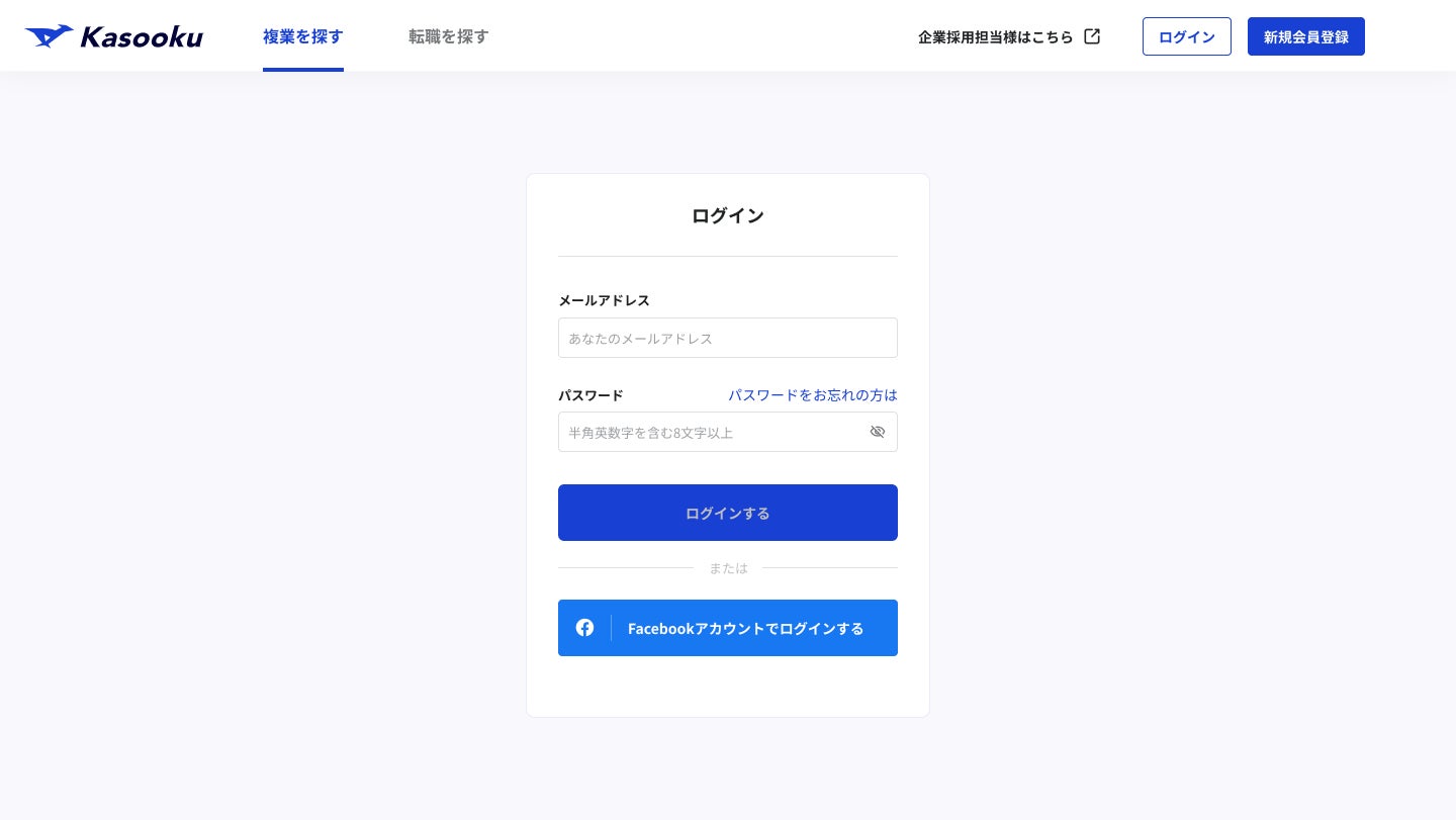 ・副業マッチングプラットホーム kasooku:https://kasooku.jp/side_jobs?tab=fukugyo