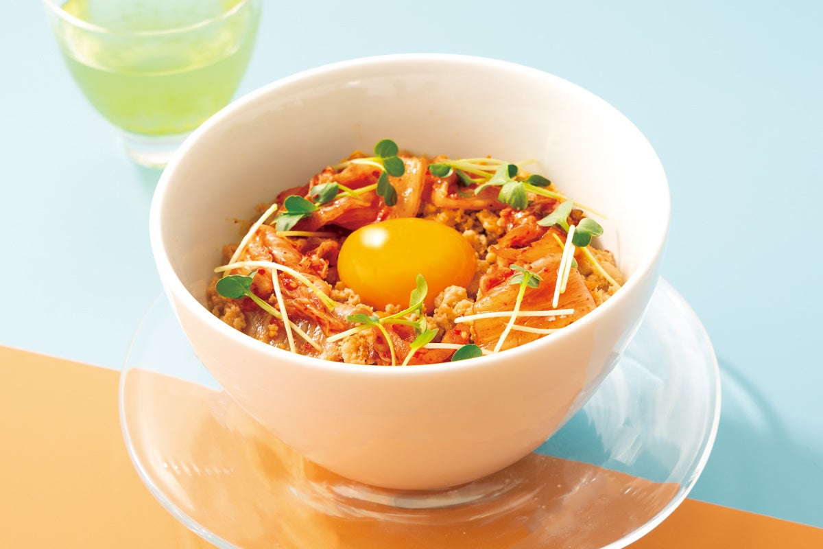 ※ 「鶏そぼろキムチどんぶり」はテイクアウトがご利用いただけますが、トッピングの卵黄をおつけできません(価格変更なし)。店舗によりご対応できない場合もございますので、詳しくは各店にお問い合わせください。