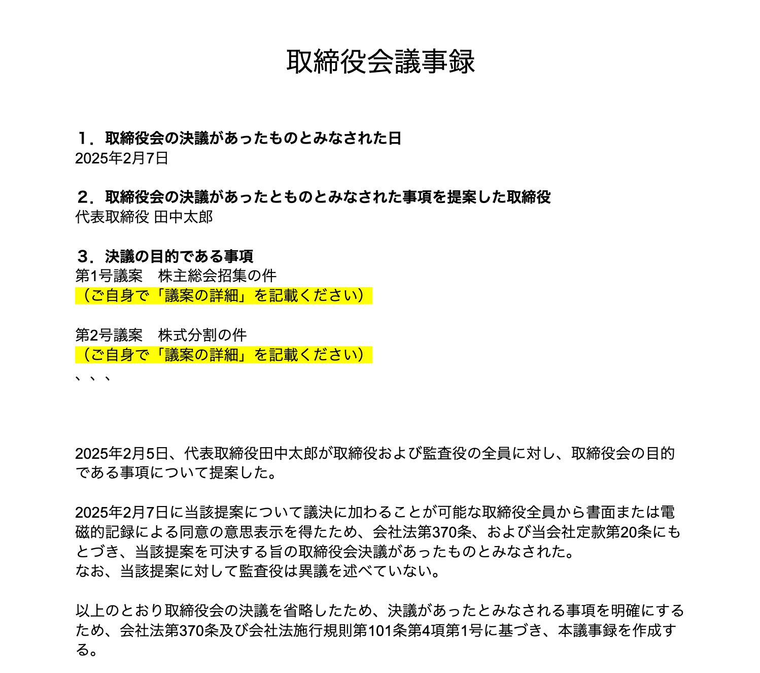 今後、議事録テンプレート作成機能もみなし取締役会に対応予定です。