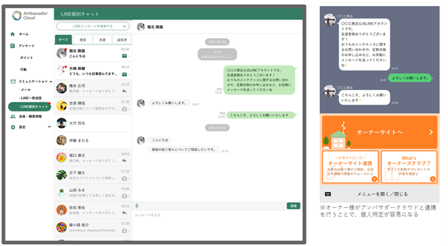 LINE連携により、メールよりも気軽なコミュニケーションが可能になり、オーナー様との接点強化や満足度向上を図れるようになりました。