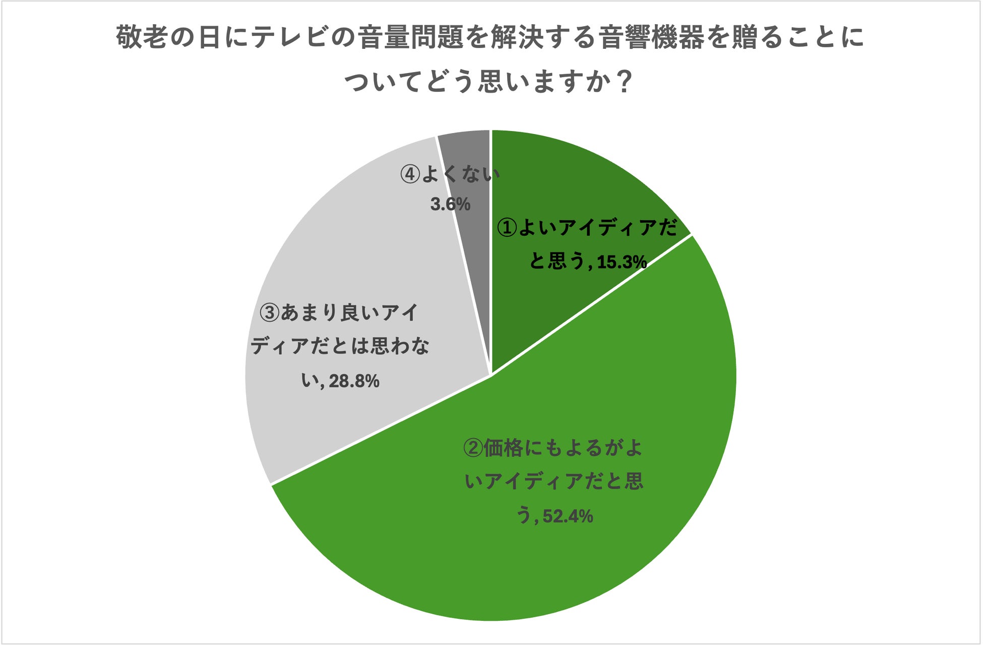 ・敬老の日のプレゼントとして、テレビの音量問題を解決する音響機器について約7割の方が「よいアイデア」と評価。