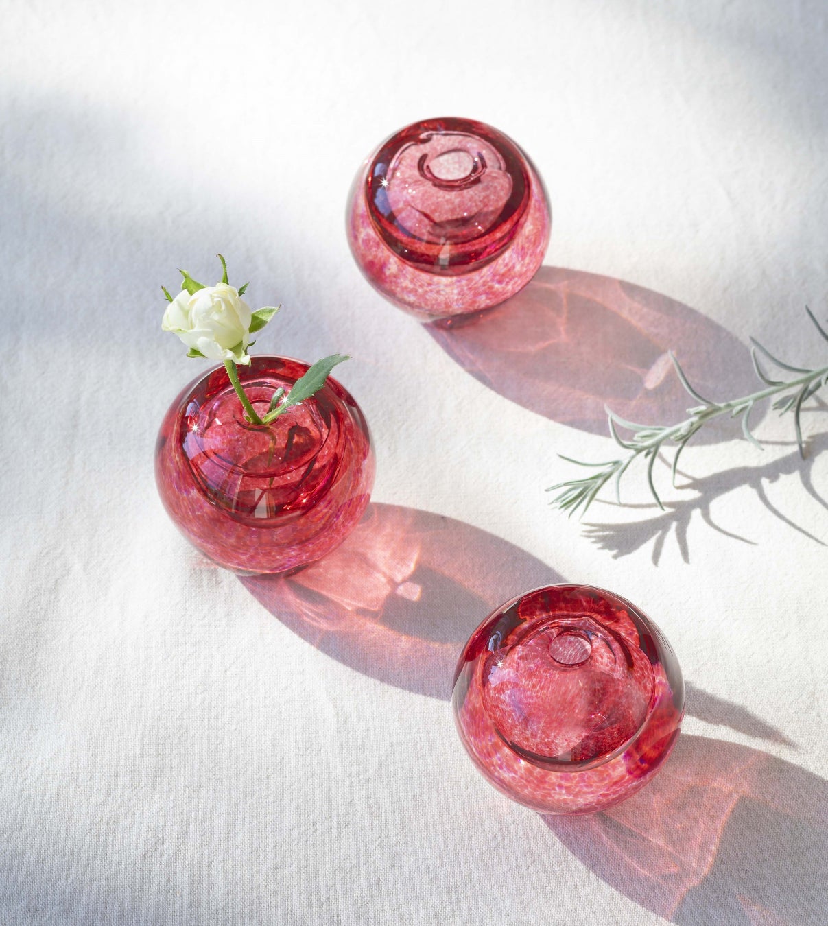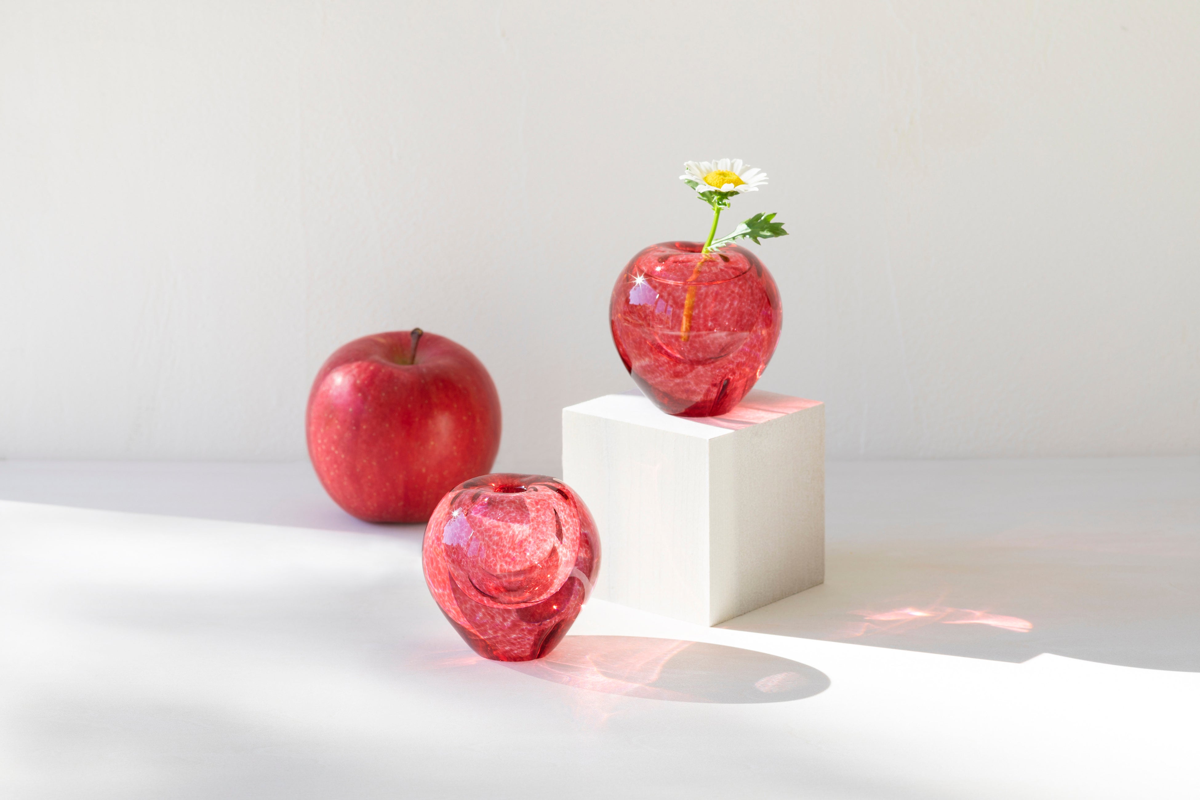 津軽びいどろのふるさとである青森県は、日本有数のりんごの産地です。今回のキャンペーンのために、今まさに旬であるりんごを色ガラスで表現し、職人がひとつひとつ心を込めて一輪挿しを作りました。りんごの可愛らしさと色合いそのままに、ころんとした丸みと手のひらに収まるサイズで、お好きな花を挿したり、そのまま飾っても素敵なインテリアになります。クリスマスなどホリデーシーズンを盛り上げるインテリアとしてぴったりです。この機会にぜひ当店でのお買いものをお楽しみください。