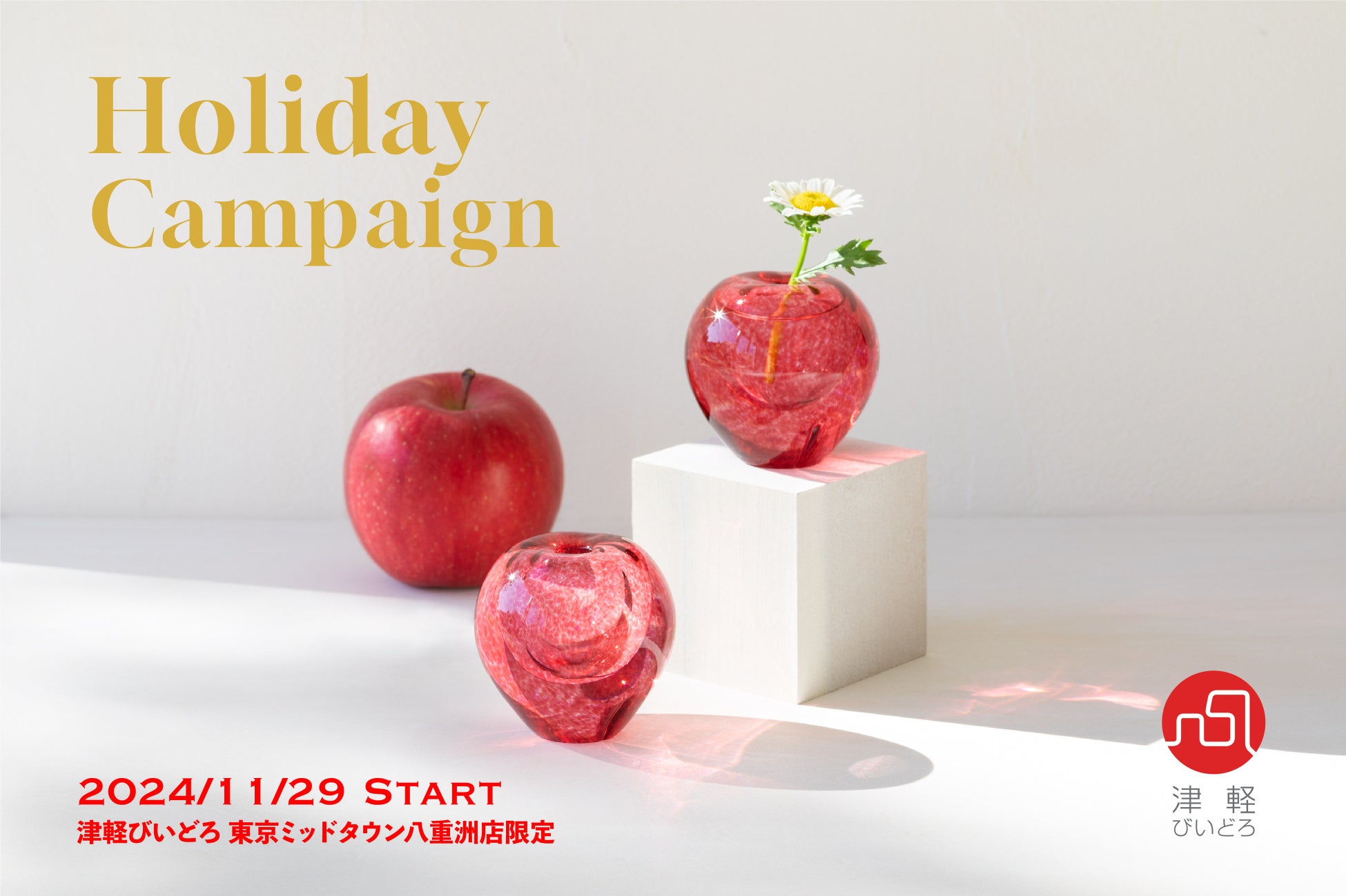 ガラス製品の製造販売を行う石塚硝子株式会社 連結グループ子会社のアデリア株式会社(本社:東京都江東区、代表取締役社長:町野晃透(てるゆき))が運営する「津軽びいどろ東京ミッドタウン八重洲店」は、2024年11月29日(金)より当店で税込11,000円以上お買い上げのお客様に「りんごの一輪挿し(非売品)」を1個プレゼントするホリデーキャンペーンを実施いたします。