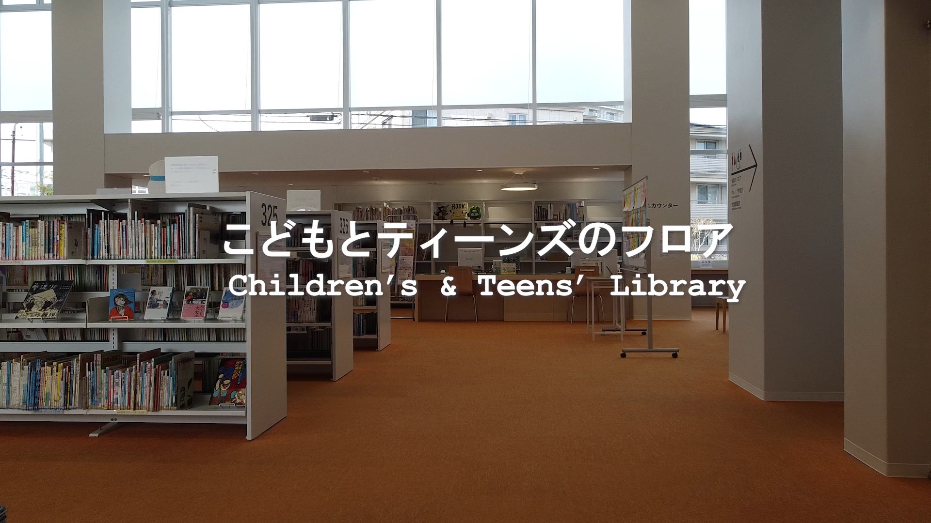 こどもとティーンズのフロアは天井も高く開放的な室内でこども達がのびのびと読書を