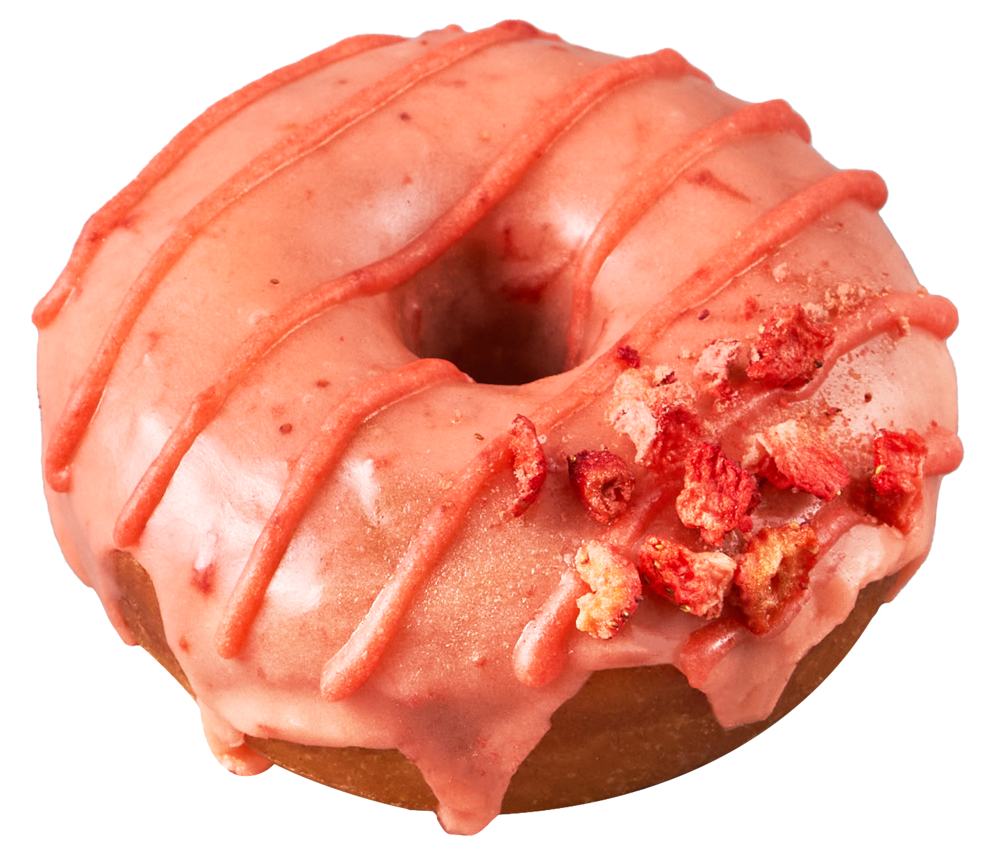 素材そのもののピンクが映える、有機栽培のいちごを使用したプラントベースのストロベリードーナツ。線状にデコレーションした濃いピンクのストロベリーソースや、サクサク食感のフリーズドライのいちごのトッピングで、味の変化をお楽しみください。今が旬のいちごをふんだんに使用した、季節限定のドーナツです。