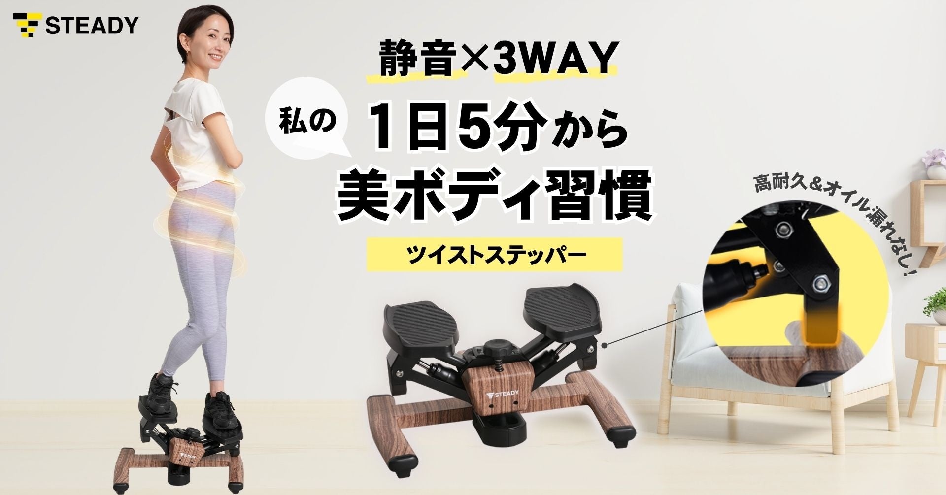 2018年のブランド展開開始から、SNSやカスタマーサポートで既存製品に対するお客様の声を拾い上げ、日本人の体格や考え方、住環境、ライフスタイルに配慮したホームフィットネス/ストレッチ製品を提案し、日本においてトップクラスのEC販売実績を誇るステディジャパン株式会社(本社:東京都新宿区、代表取締役CEO:森 由樹)は、運動習慣を身につけたい忙しい現代人のための「STEADY ツイストステッパー」を2025年7月4日(金)よりSTEADY公式サイト、総合オンラインストアAmazon.co.jp、楽天市場などにて販売開始します。