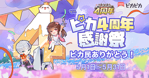 - 【ピカ4周年感謝祭〜ピカ民ありがとう〜】イベント開催中