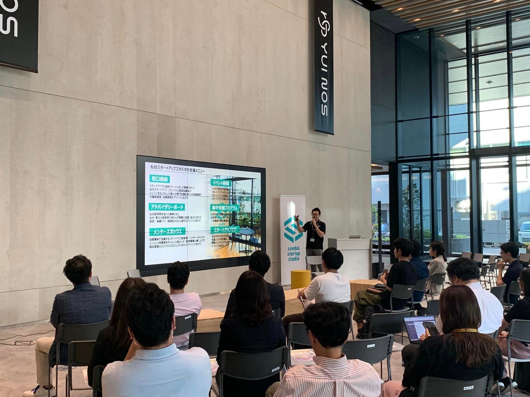 革新的なアイデアや技術を強みに、仙台・東北から世界を変えるスタートアップが生まれることを目指し、ビジネスの立ち上げから成長に向けた様々な支援をワンストップで提供するスタートアップ支援拠点です。スタートアップや起業を目指す方、スタートアップに関わる地域の様々な支援機関、仙台・東北や首都圏の東北にゆかりのある経営者や支援者