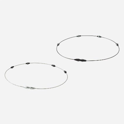 留め具にはアルミ素材、紐部分にはアレルギーの起こりにくい「サージカルステンレスワイヤー」を採用。