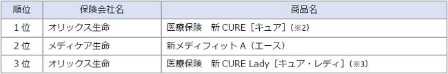 (※2)「医療保険 新CURE [キュア]」は、2022年4月1日に新規販売停止となり、2022年4月2日より改定商品「医療保険 CURE Next[キュア・ネクスト]」が販売されております。