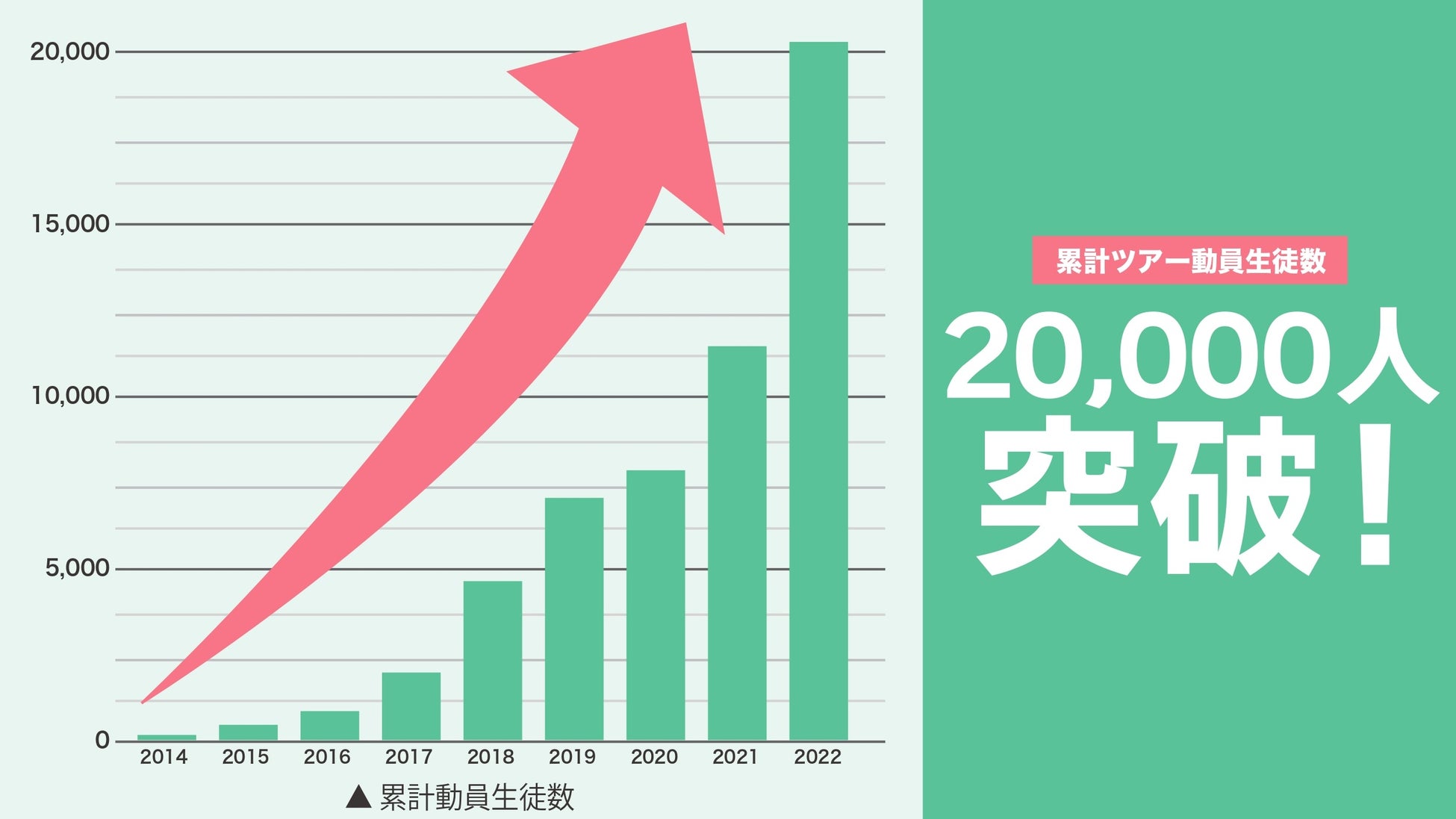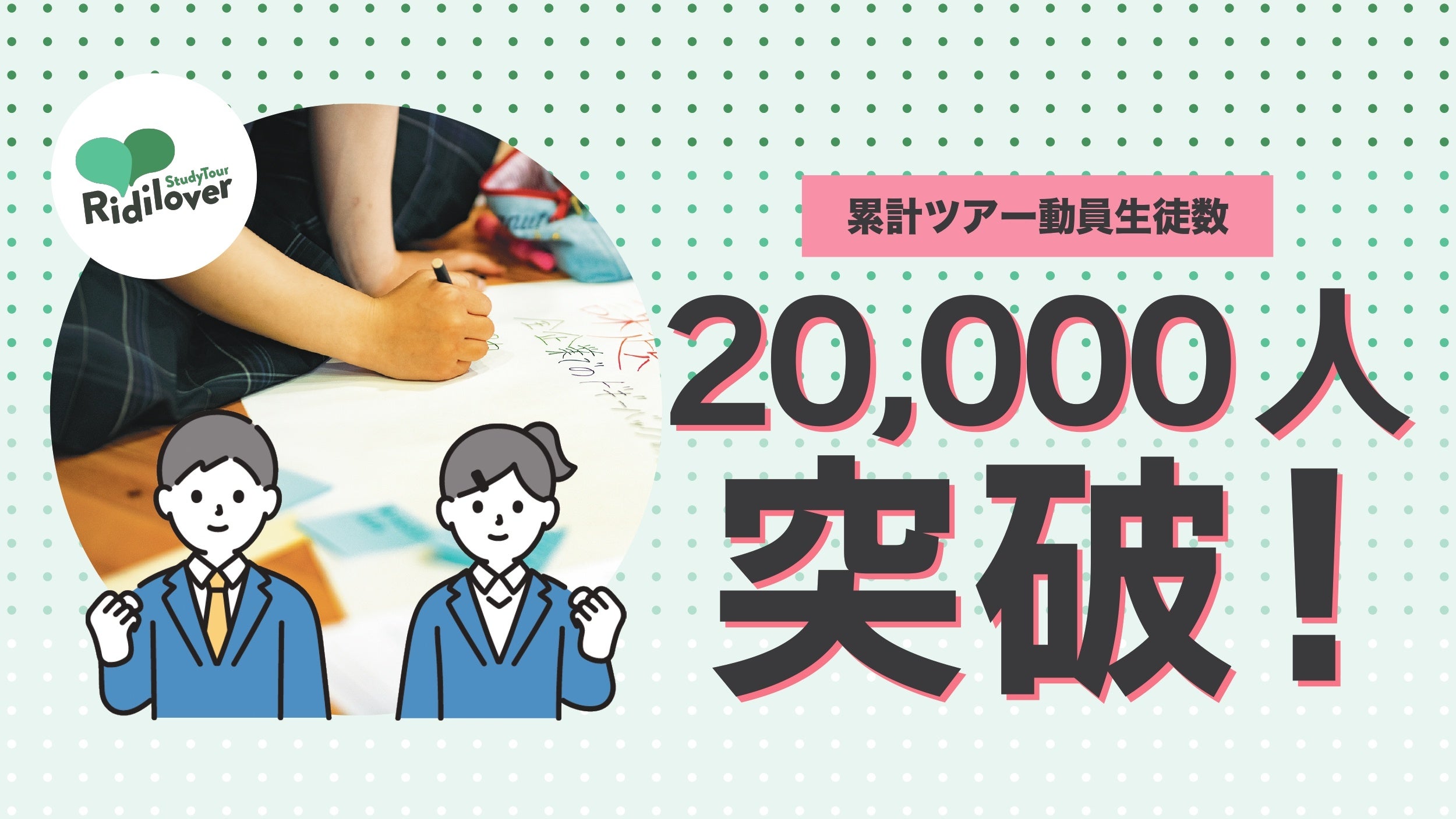 株式会社Ridilover(以下リディラバ、代表取締役:安部敏樹)は中高生の修学旅行・校外学習の機会を利用して社会問題の現場を体感する「SDGs/社会問題スタディツアー(以下スタディツアー)」を提供しています。この度2014年のサービス開始以来、参加生徒数が累計2万人を突破いたしました。特に直近2年で累計参加生徒数は約3倍になり、「探究学習」への注目度が上がるにつれて、修学旅行に変化が見られています。