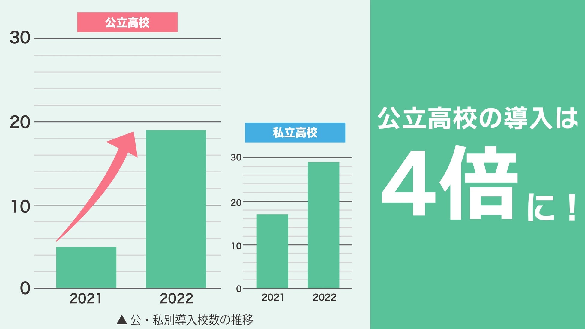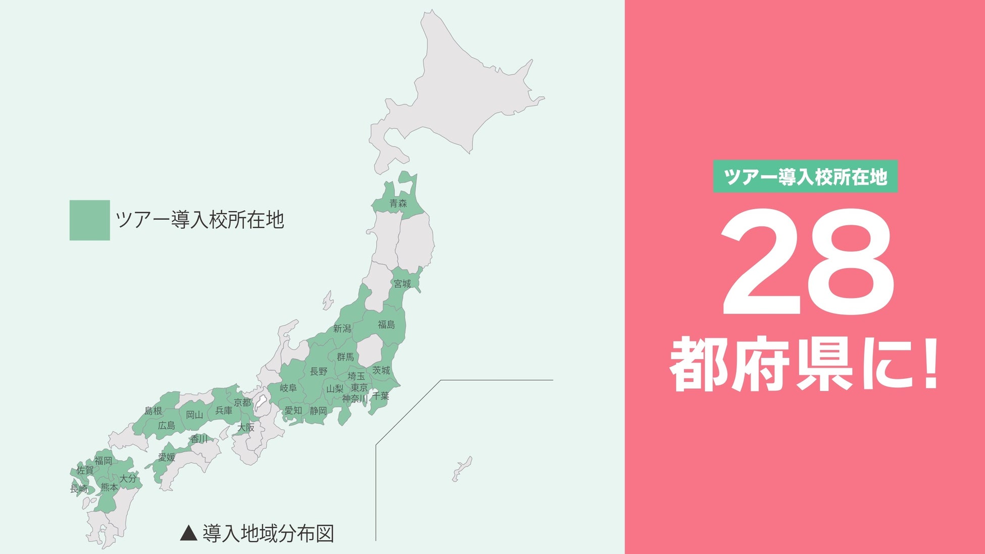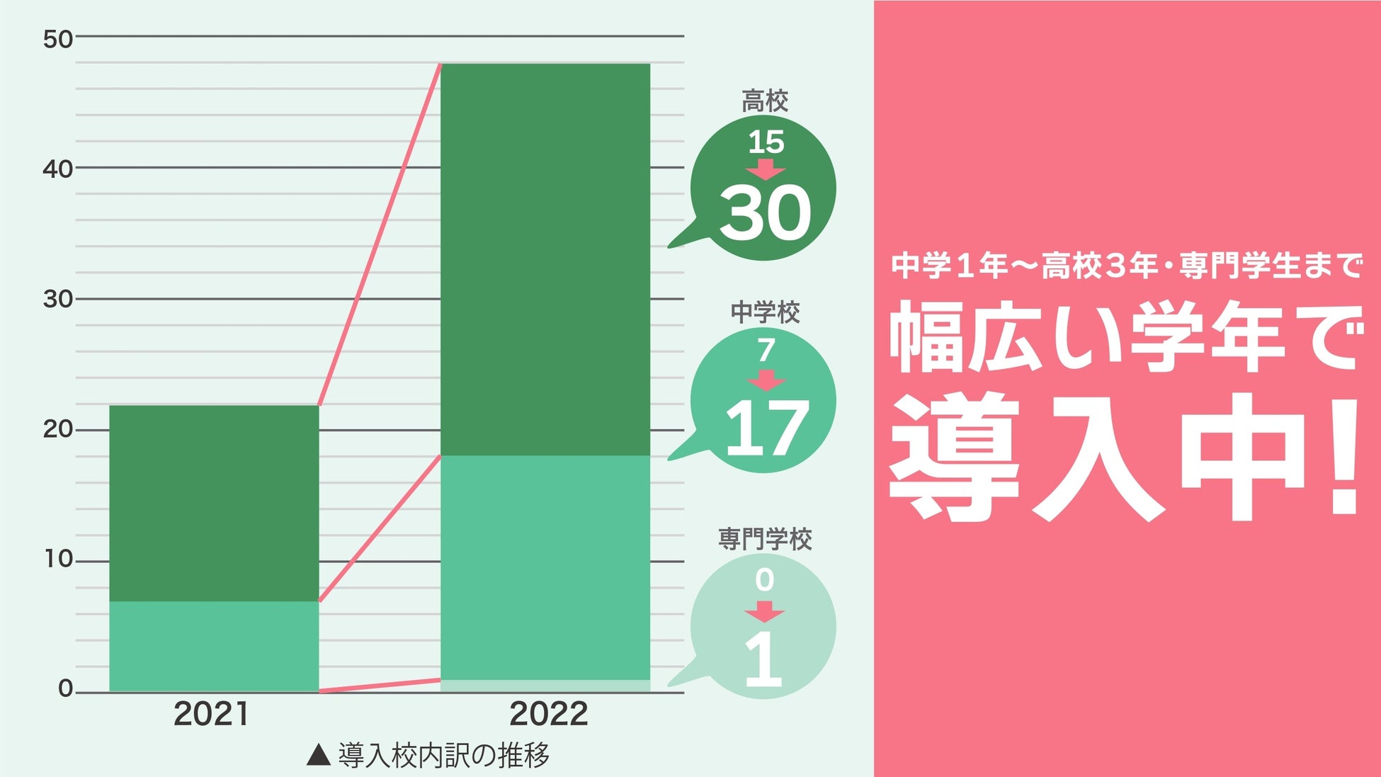 サービス開始当初は首都圏の一部の私立高校での導入がメインでしたが、2022年度は17都府県48校の中学・高校にて実施いただき、累計で28都府県で導入いただいています。