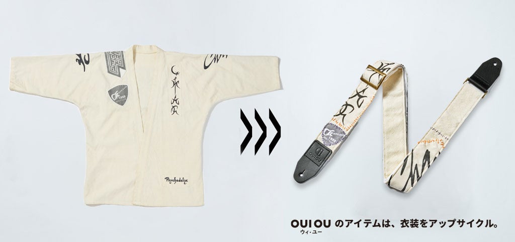 OUI OUは、推しといつも一緒に過ごせる "ライフ with 推し” をコンセプトに展開し、アーティストのステージ衣装や私服を、クリエイターの手によって1点もののアート作品にアップサイクル。