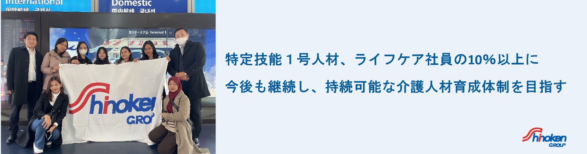 株式会社シノケングループ(東京本社:東京都港区、代表取締役社長CEO:篠原 英明 以下、グループを総称して「当社グループ」)は、インドネシアからの特定技能1号人材5名が、12月1日に来日、入国手続きを終え、当社グループの介護施設に配属されましたことをお知らせいたします。当社グループにおける特定技能人材の受入れは4度目で総勢35名となり、ライフケア事業の社員のうち10%以上を占めるに至りました。