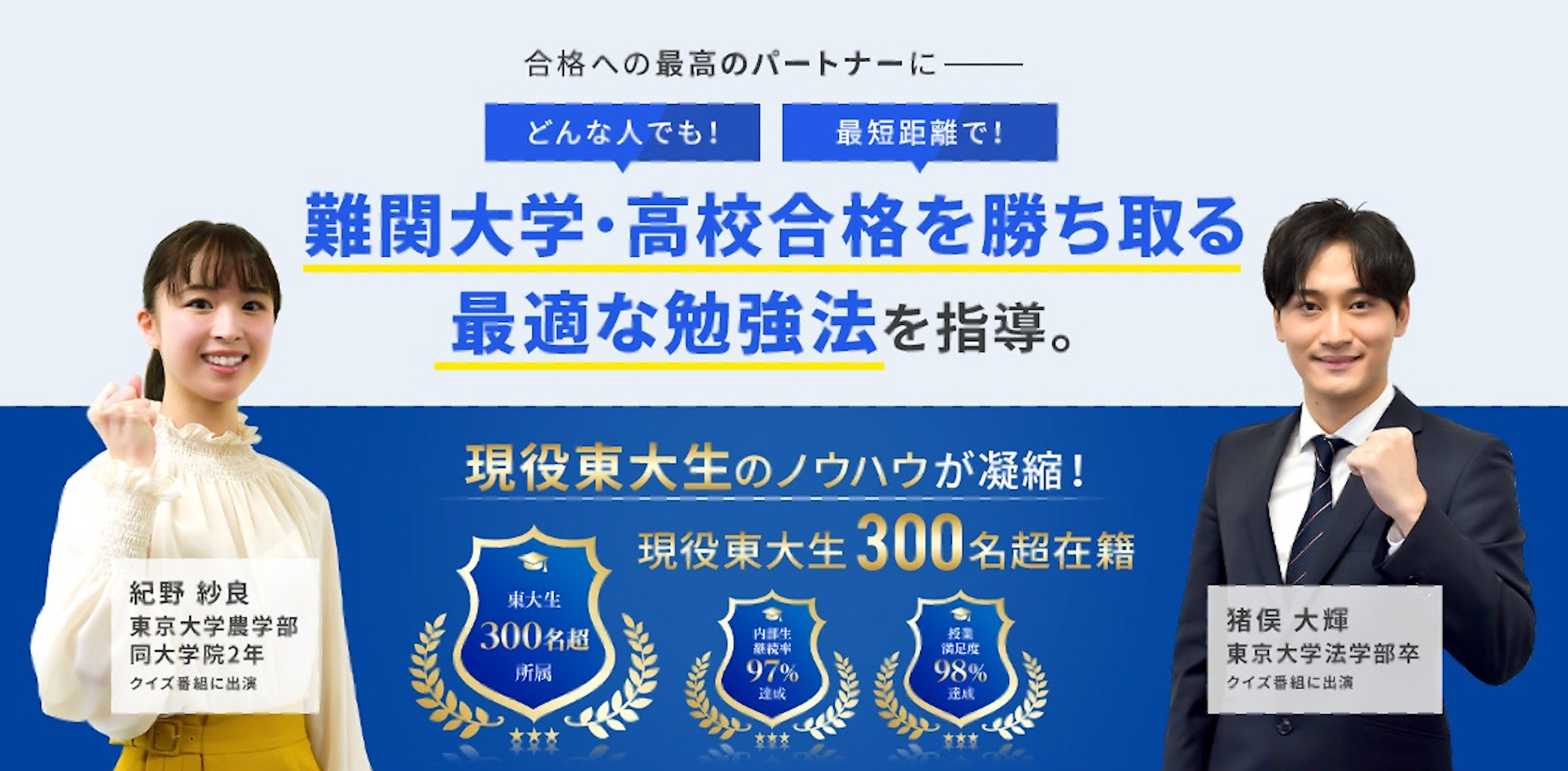 所属コーチの人数は300名以上。先輩が編み出した「限られた時間で、効率よく勉強する方法や思考力」が身に付きます。