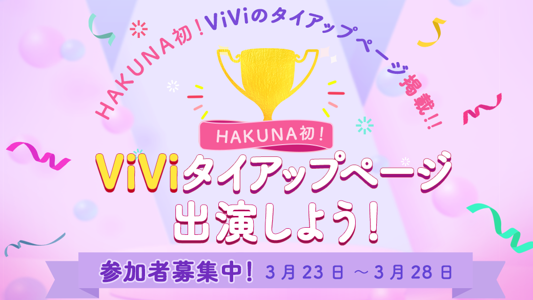 「HAKUNA Live」3/23よりHAKUNA Live初の「ViViタイアップページ出演しよう」イベントを実施!