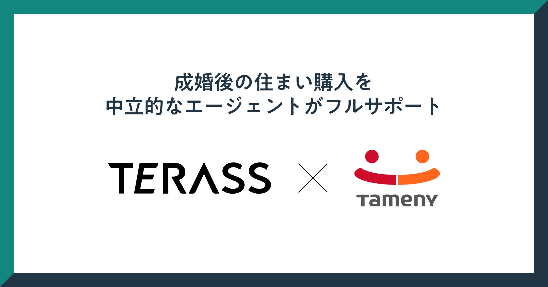不動産仲介関連サービスを提供する株式会社 TERASS(東京都港区、代表取締役:江⼝亮介、以下TERASS)は、このたび、婚活・カジュアルウェディング事業等を行うタメニー株式会社(本社:東京都品川区、代表取締役社長:栗沢研丞、証券コード:東証グロース6181、以下タメニー)と連携を開始することになりましたのでお知らせいたします。