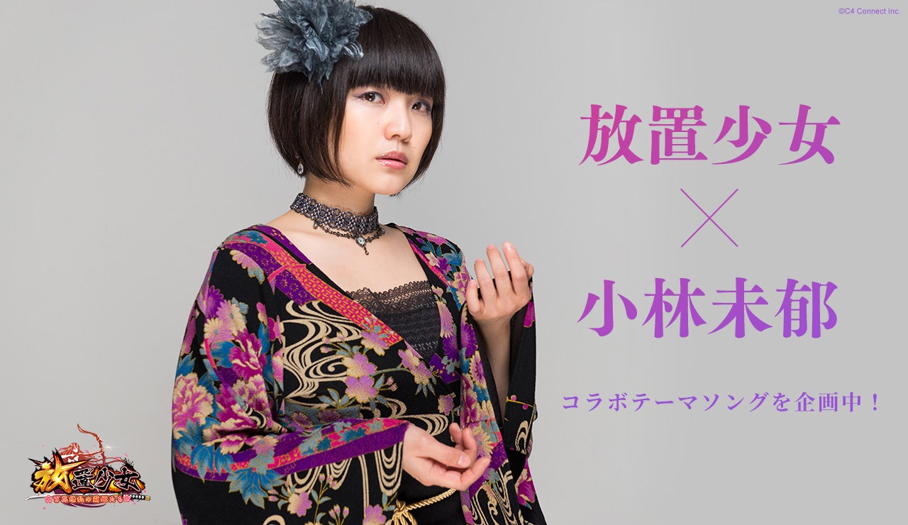 C4 Connect株式会社(本社:東京都渋谷区)は、現在サービス中の美少女RPGゲーム『放置少女〜百花繚乱の萌姫たち~』(スマートフォンアプリ及びブラウザ版)(以下、『放置少女』)が人気アーティスト小林未郁さんとコラボテーマソングを企画していることを発表いたします。