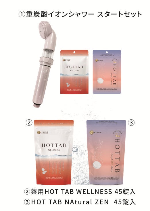 (重炭酸イオンシャワーヘッド/薬用 HOT TAB WELLNESS/HOT TAB Natural ZEN 各9錠)
