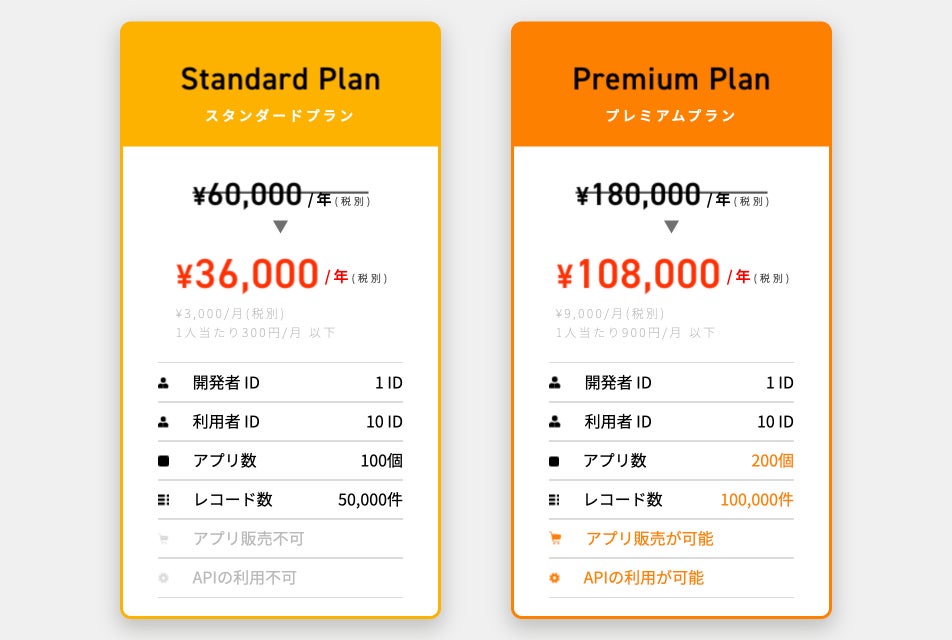 プレミアムプラン :通常価格:180,000円/年(税別)→ライセンス適用価格:108,000円/年(税別)