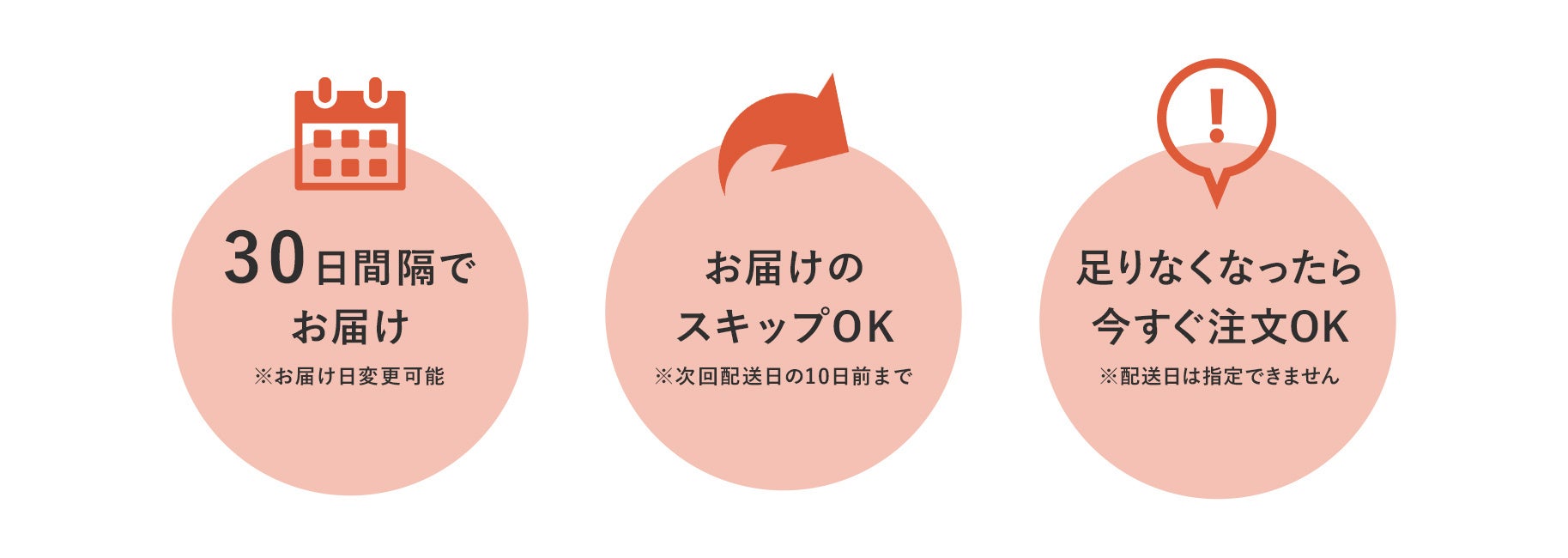 「送料無料」「お届けサイクルが自由に選べる」「スキップOK」「定期便特別価格」などメリットが沢山。高濃度美容液でお肌を美しく保つために、お得で便利な定期便をぜひご利用ください!