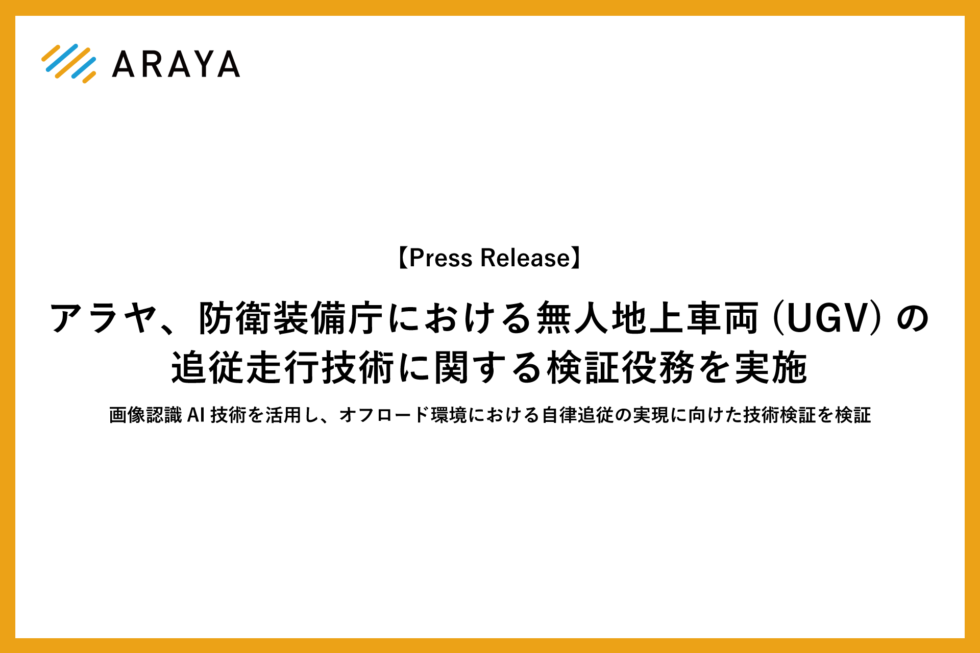 アラヤ、防衛装備庁における無人地上車両(UGV)の追従走行技術に関する検証役務を実施