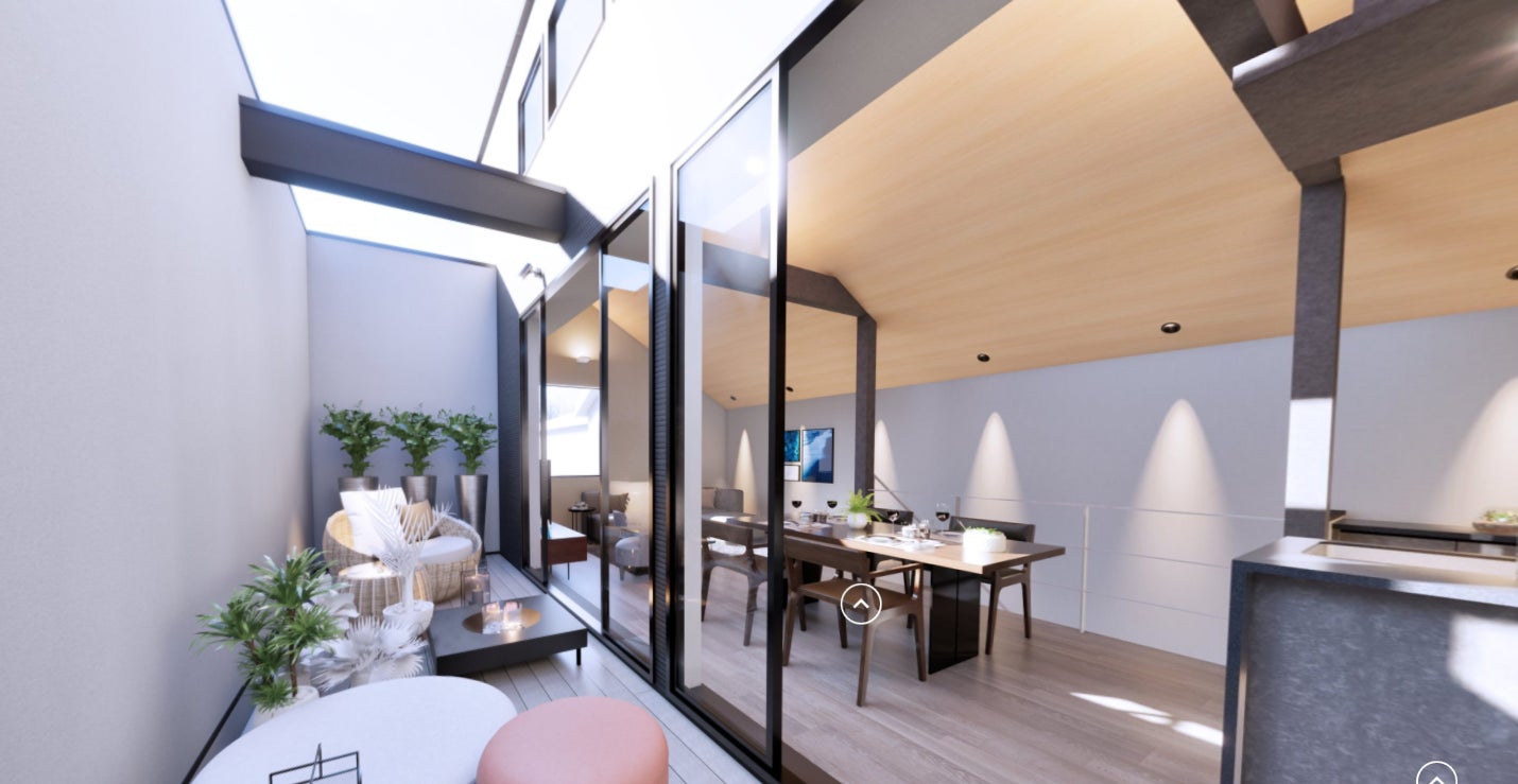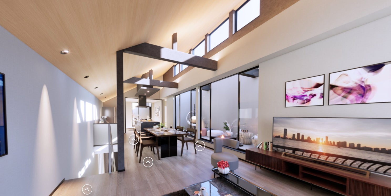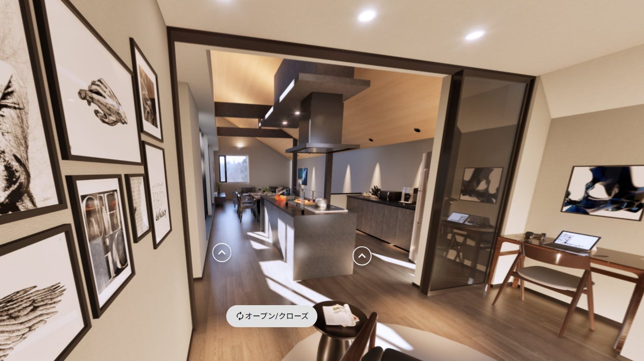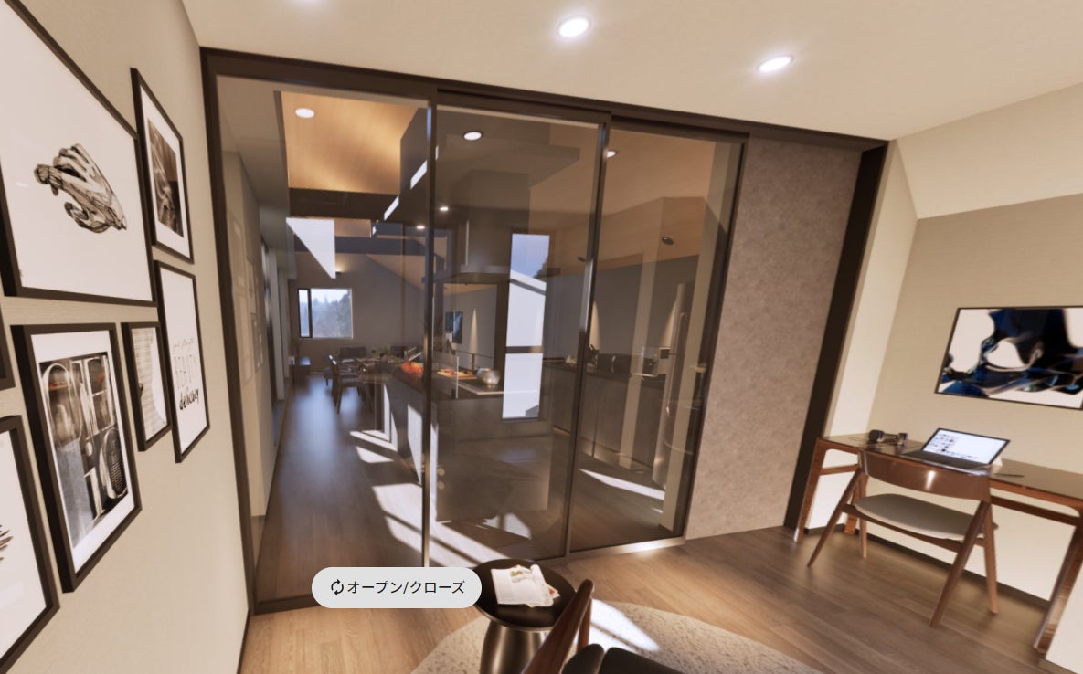 ARの活用により、リビングのパーテーションドアの開閉までイメージすることが可能です。はじめてでも直感的な操作で内見を楽しみ頂けます。