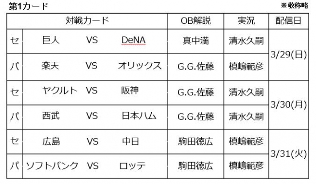 ■『プロ野球 “バーチャル”開幕戦 2020』対戦カード一覧■